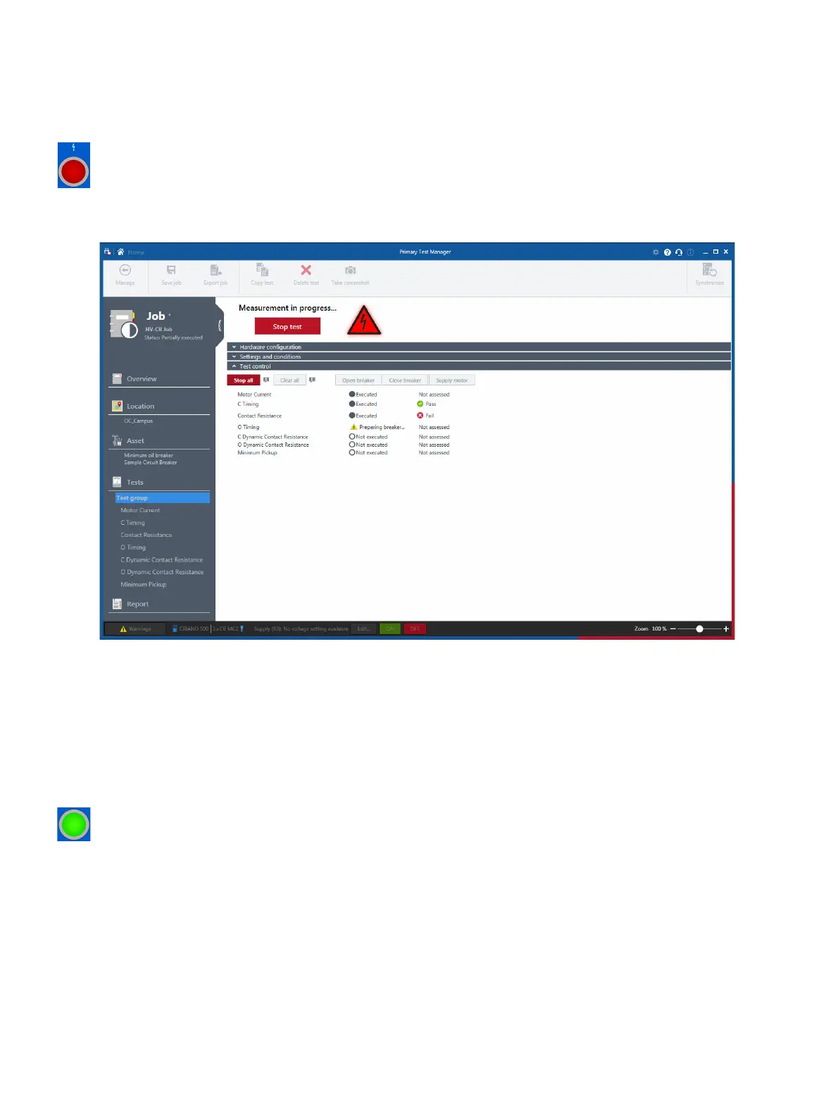 Note: You can abort the measurement anytime manually by pressing the Emergency Stop button