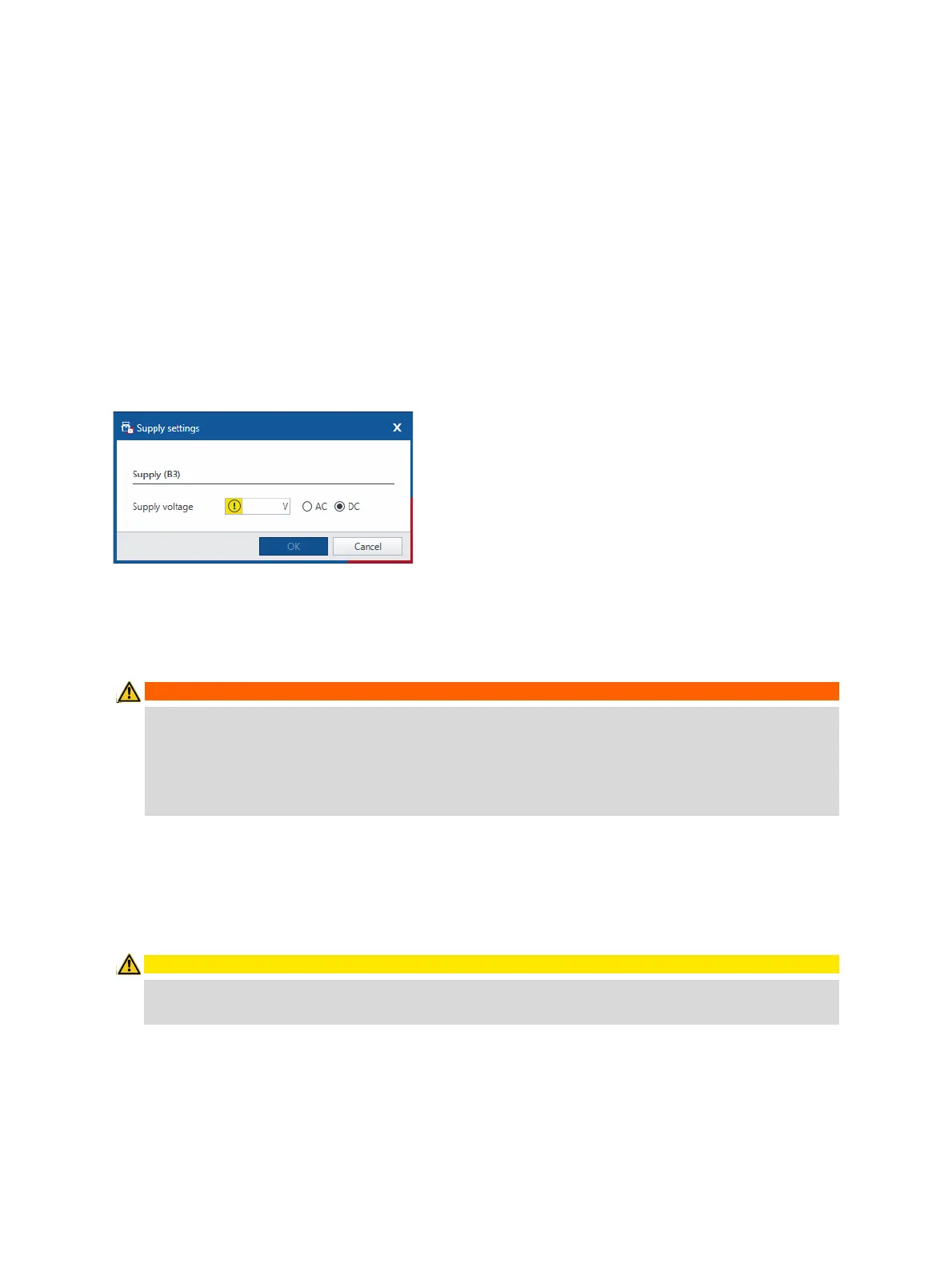 Note: If you have activated the continuous power supply, the coil supply settings are not available