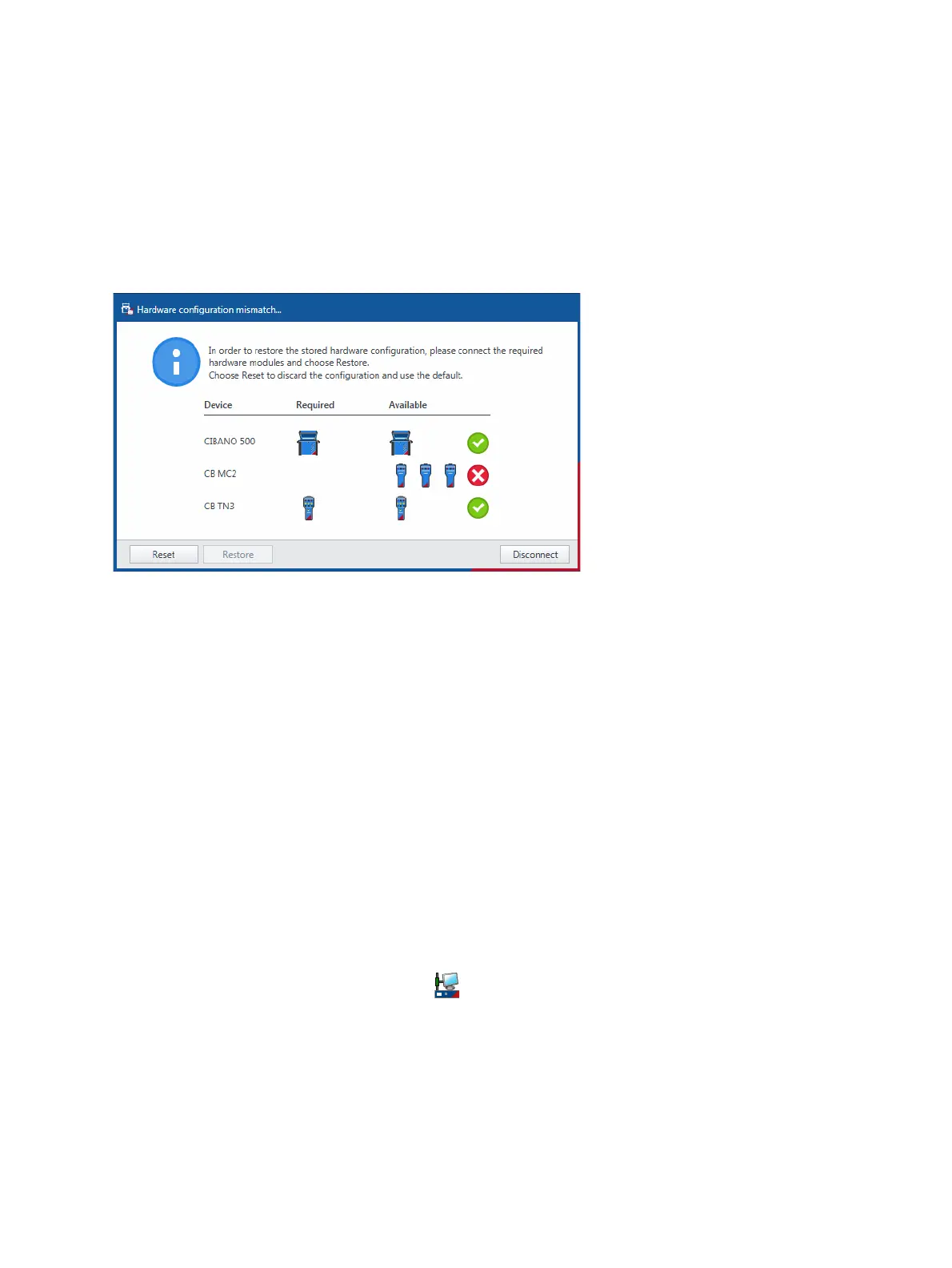 ► To restore the stored hardware configuration, change the connected configuration to match the