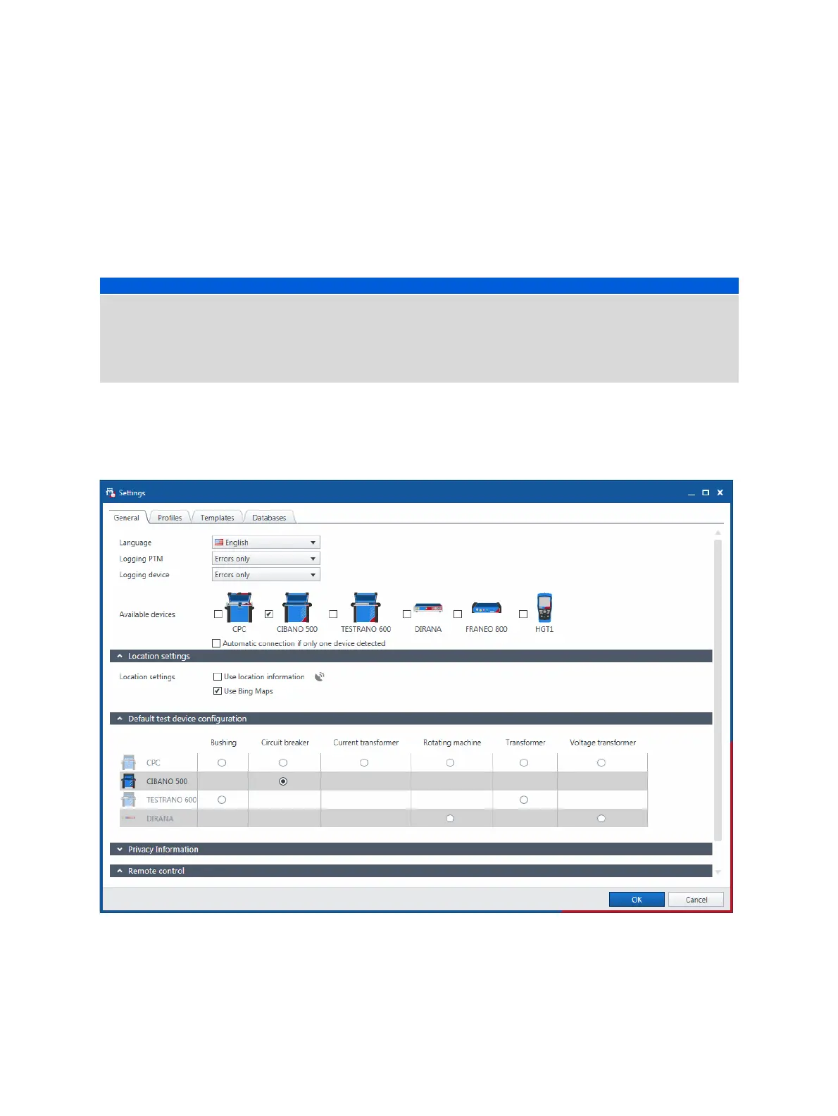 In the Settings dialog box, you can make a number of Primary Test Manager settings to match your