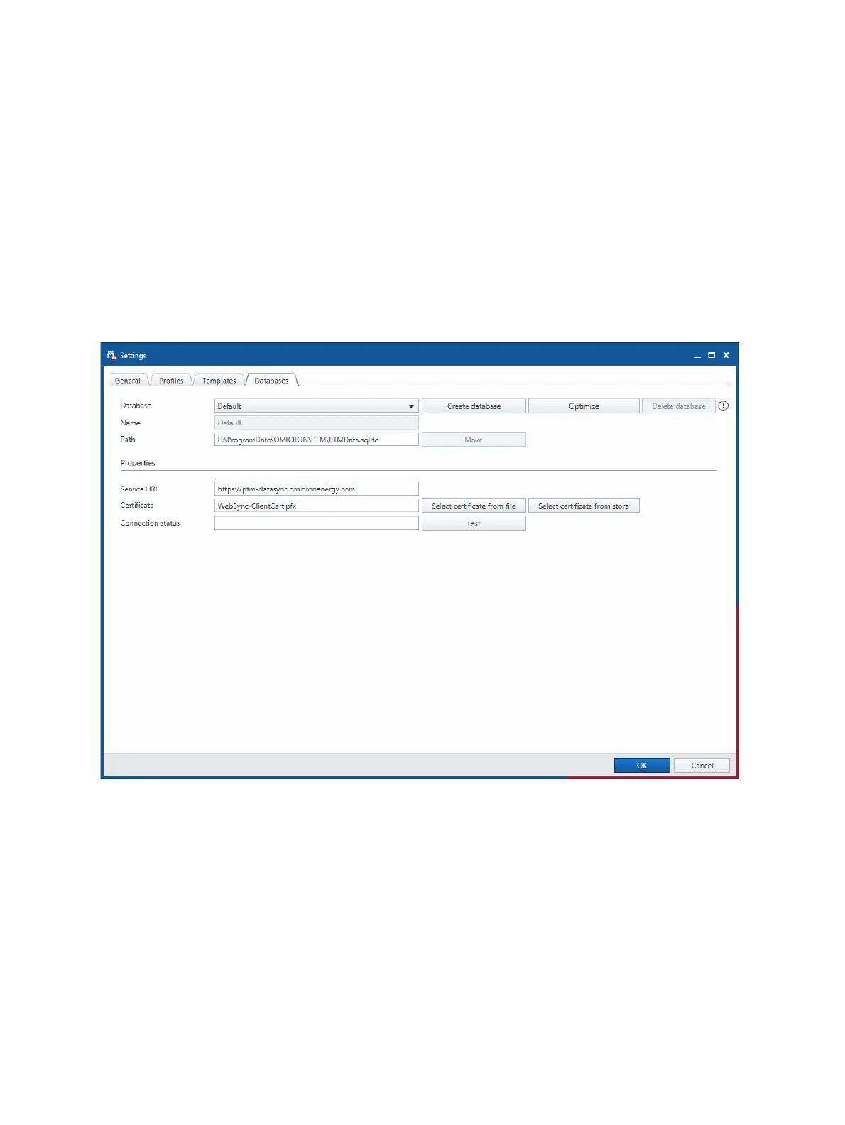 ► For the service URL and certificate for DataSync via web server, contact your regional OMICRON