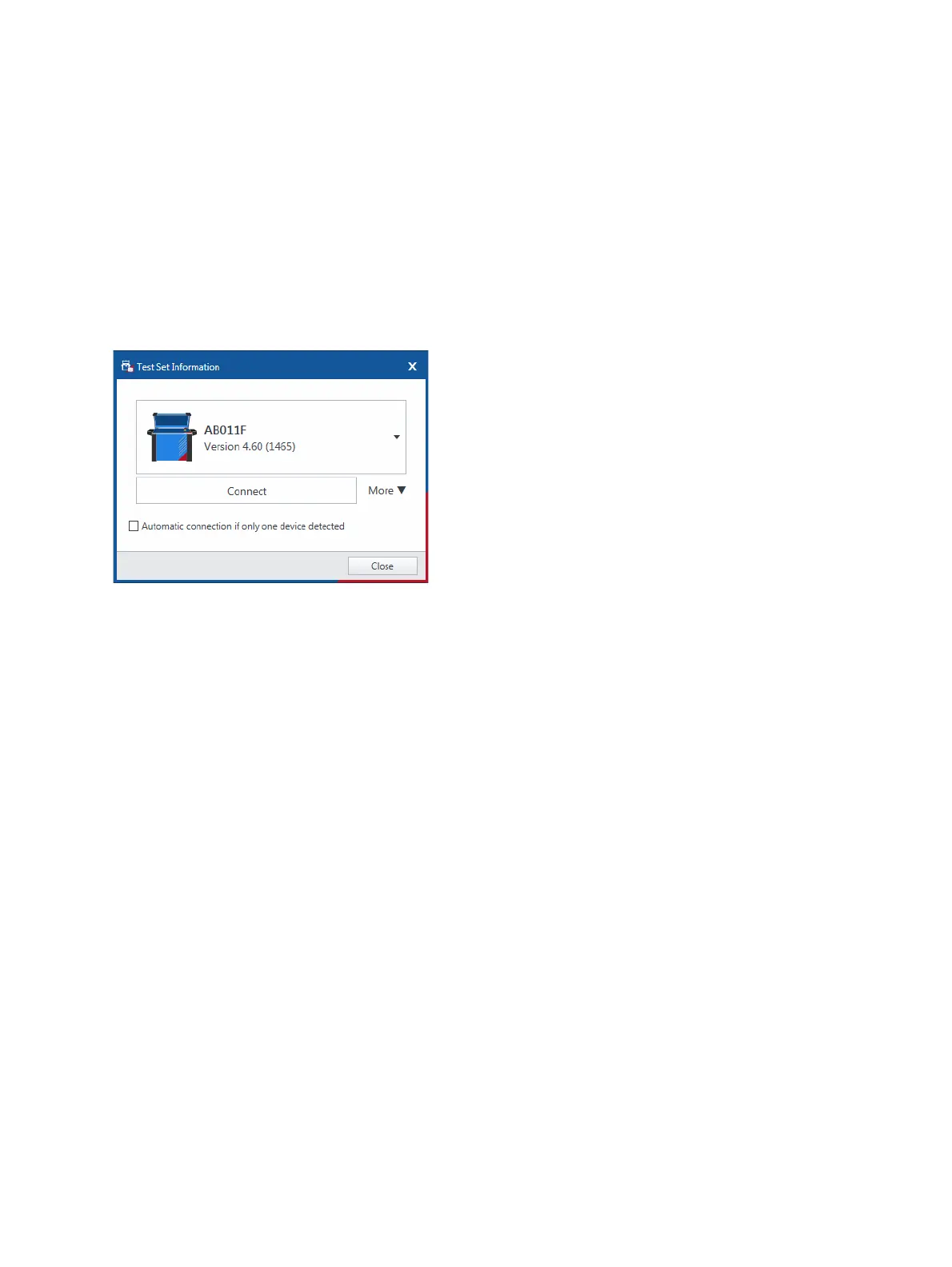 2. In the Test set information dialog box, select the test system from the list, and then click Connect.