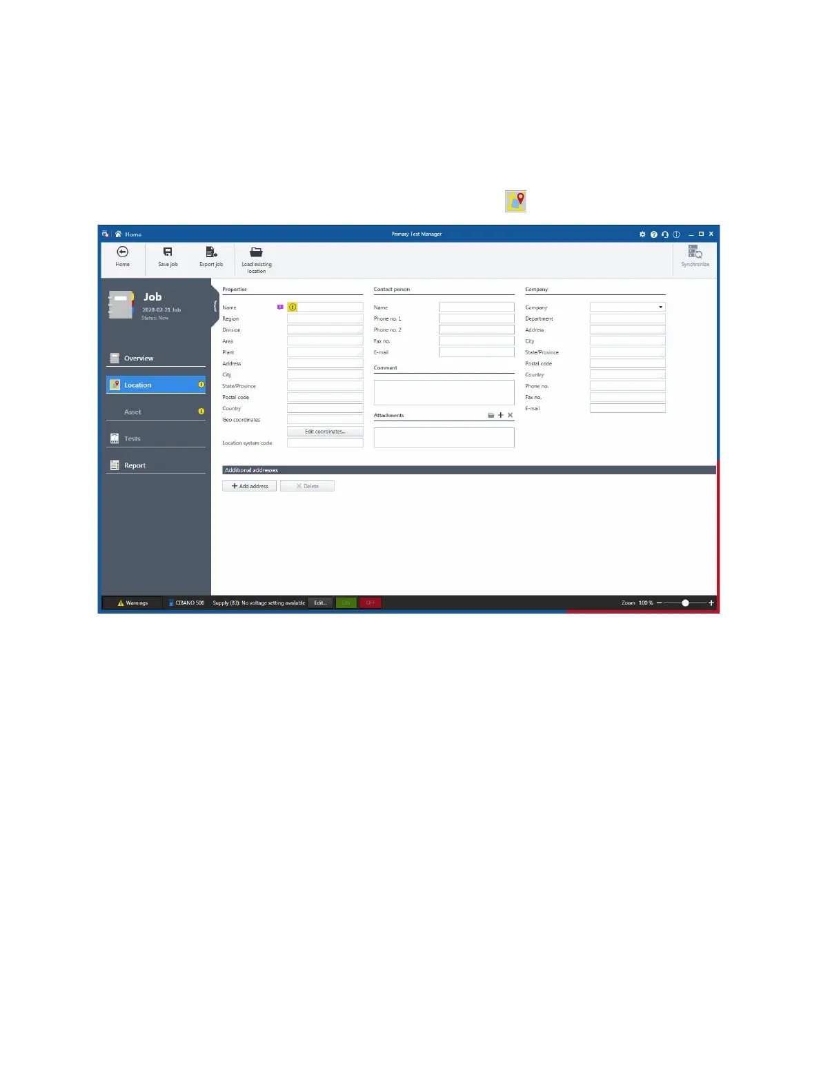 Note: If you enter location data different from the master location, a notification bar at the top of the