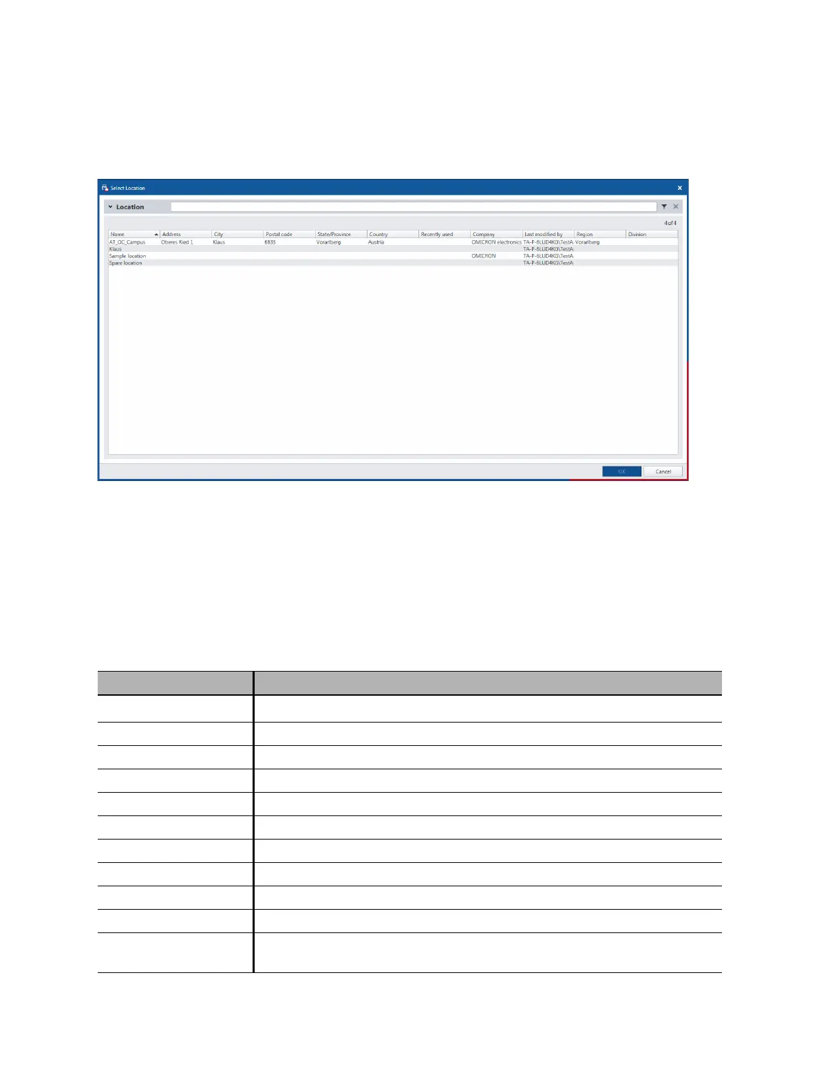 In the Select Location dialog box, you can search for locations (see 10.1 "Search for objects" on