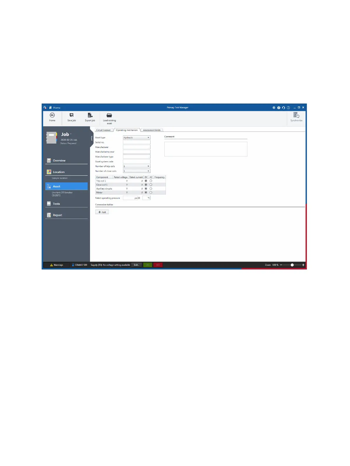 Figure 7-10: Circuit breaker view: Operating mechanism tab