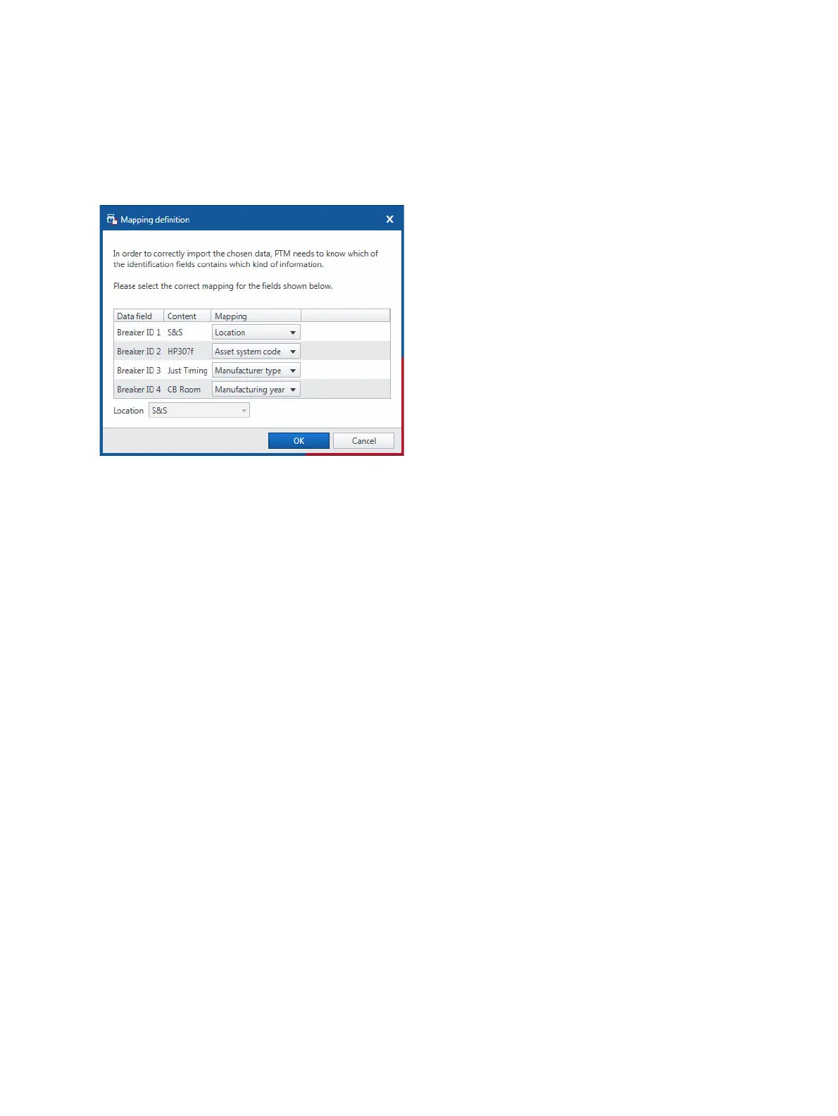 4. In the Mapping definition dialog box, map the data fields to the location name and general asset