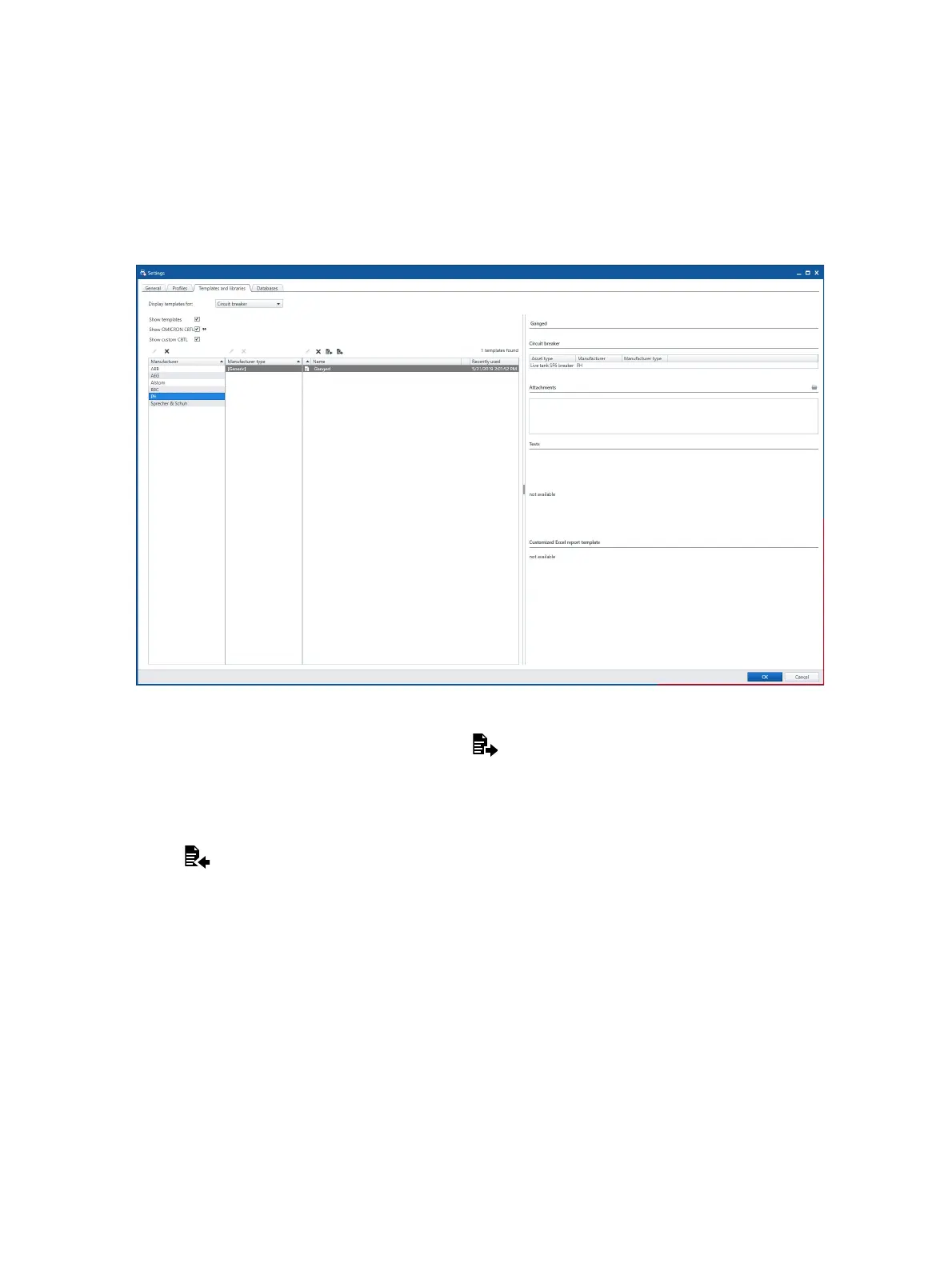 Note: You can filter the displayed data. To display the job templates, OMICRON CBTL data and your