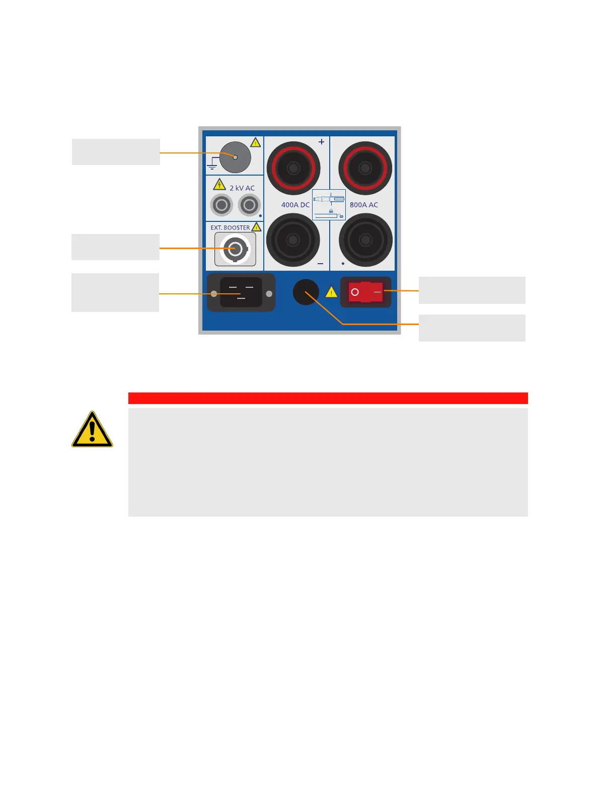 ► Do not use any other booster cables than the ones supplied by OMICRON.