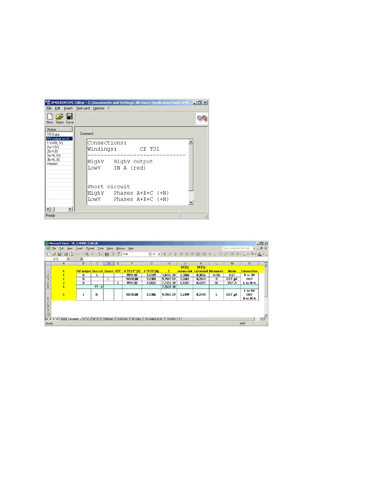 Figures 5-6 and 5-7 show the preparation with the CPC Editor and the test results in MS Excel format.