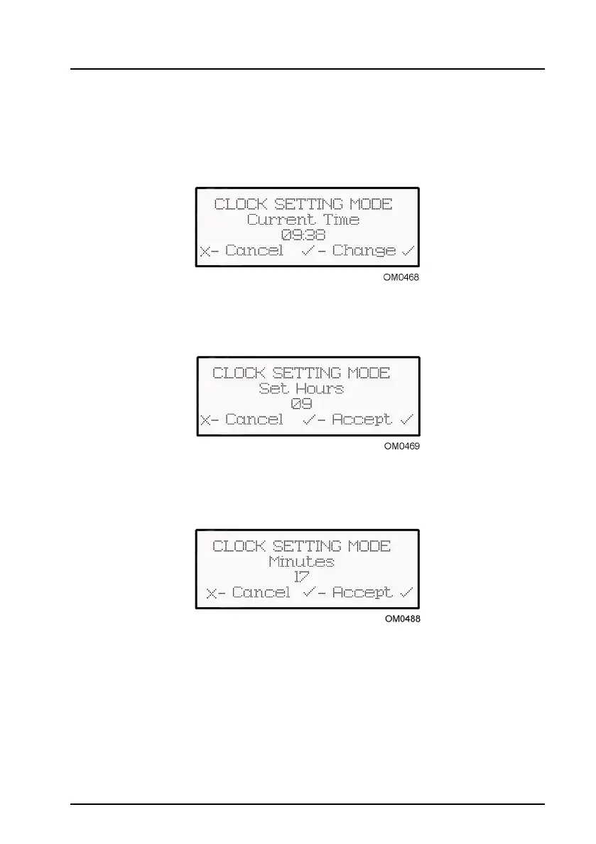 The minutes can be set by pressing the up or down arrow to display the correct minute
