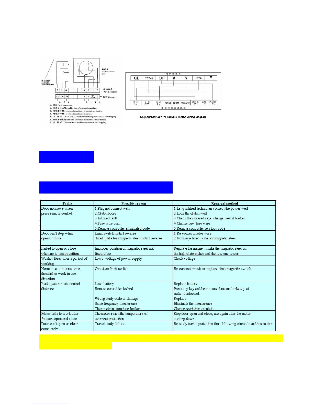 Ⅷ. Common faults and removal methods: