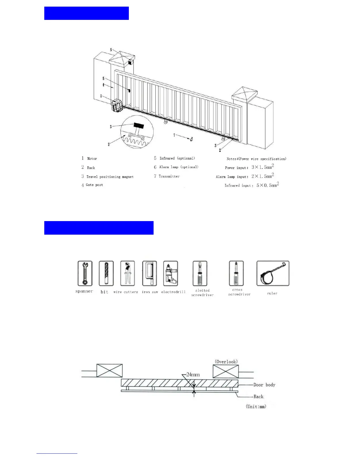 (Distance between gear and door body is 24mm)