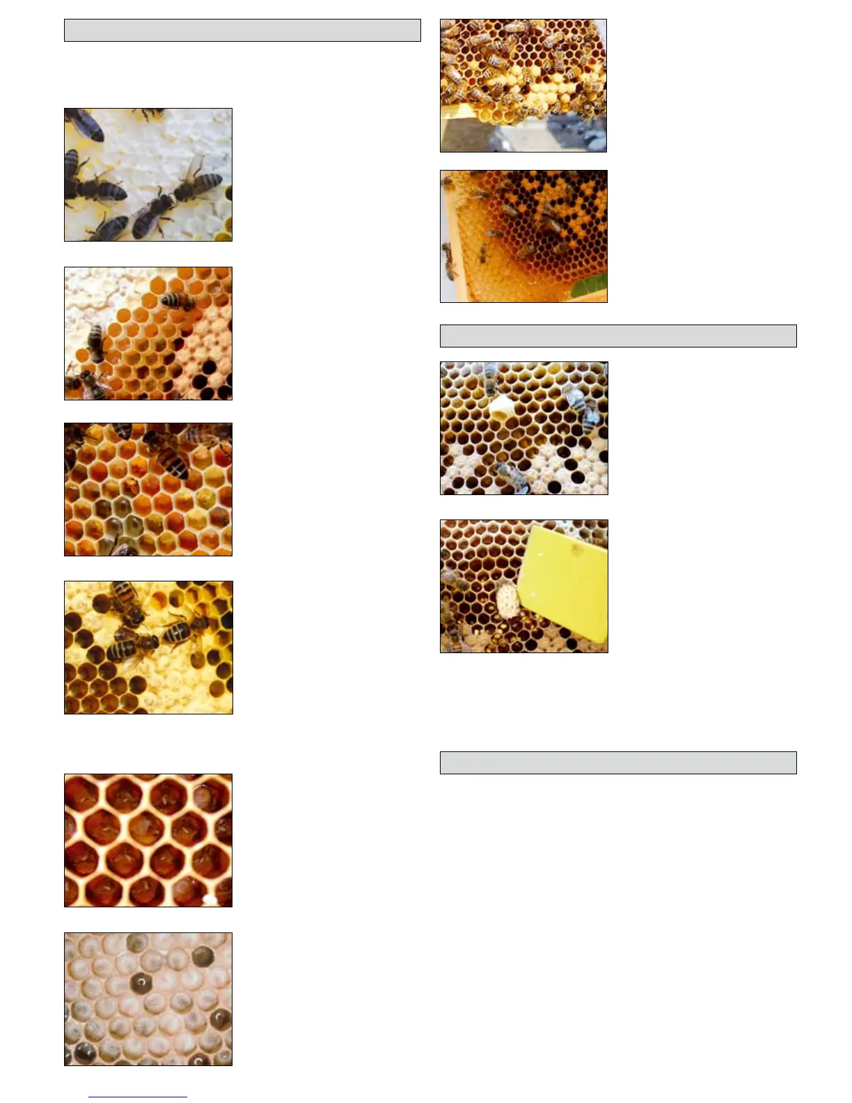 nectar; pollen; brood; and empty cells. These are easy to identify, all are