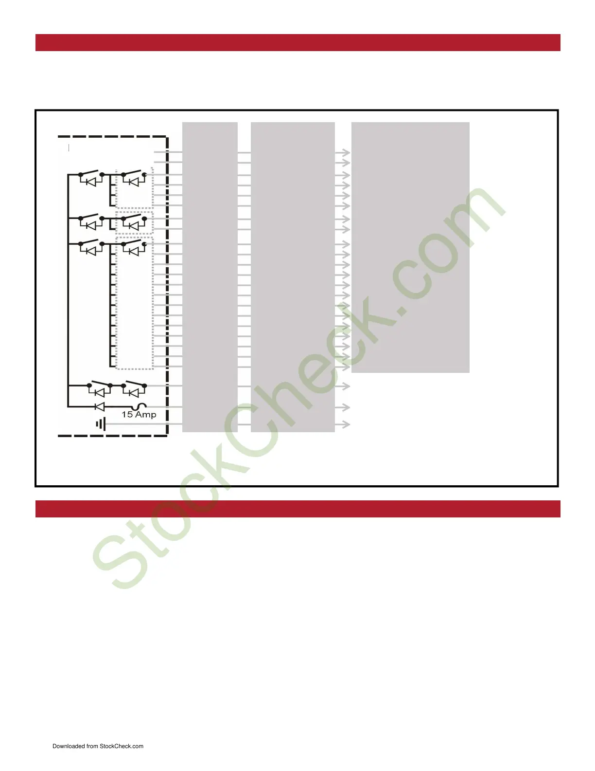 Outputs: 19 solid state, high-side driver outputs, 5A max. each, total combined current 15A