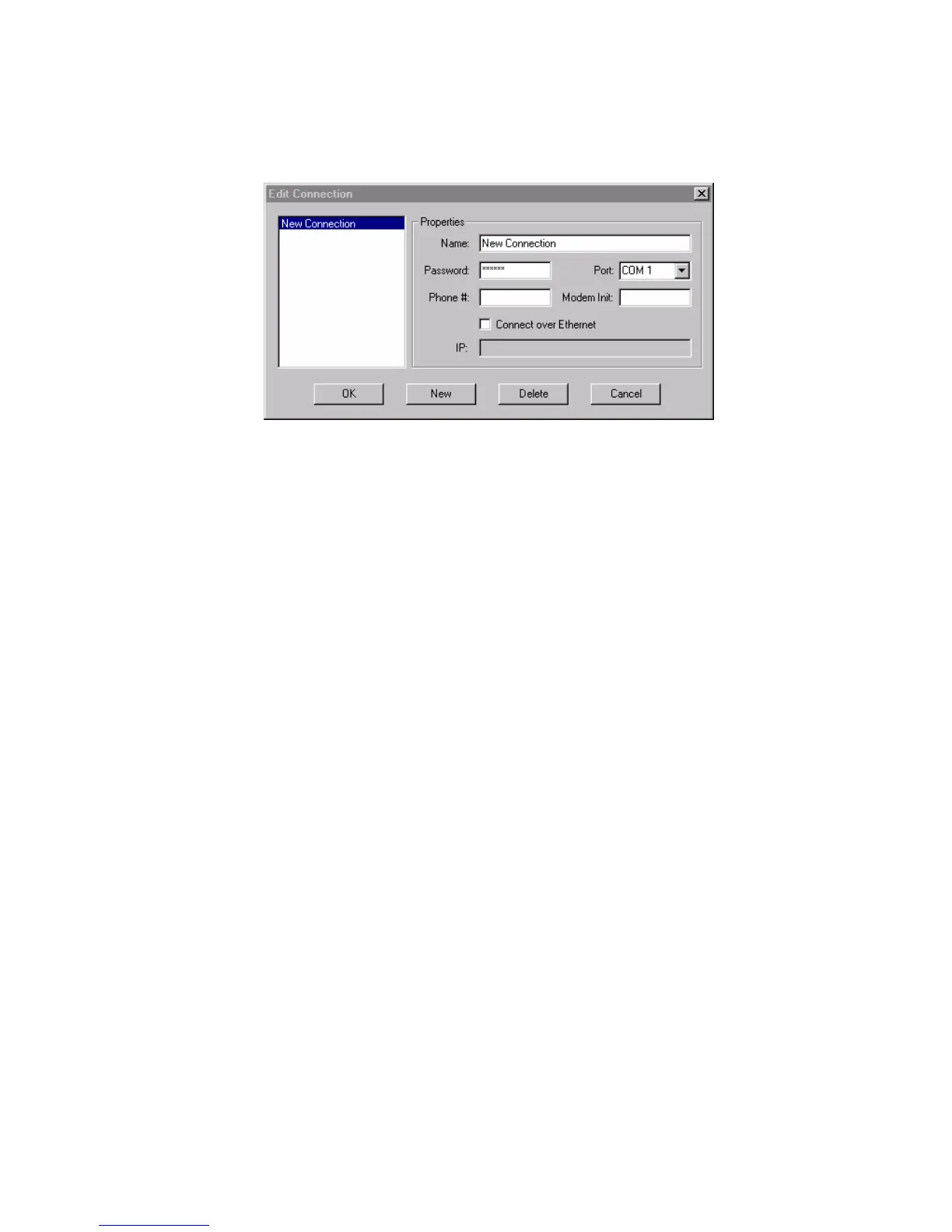 (Note: Use New to create any additional connection entries. Use Delete to remov