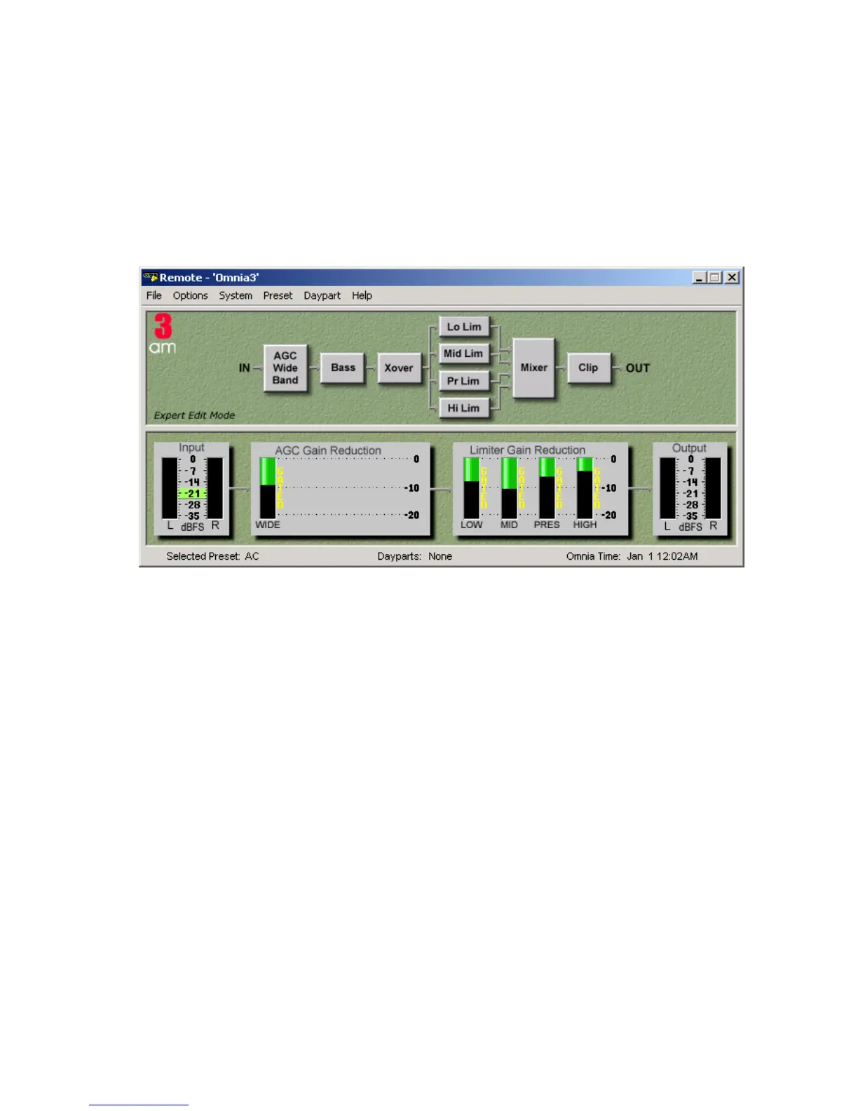 The Remote Control Program for Omnia-3 provides all the features of the front panel, displayed in an easy-to-