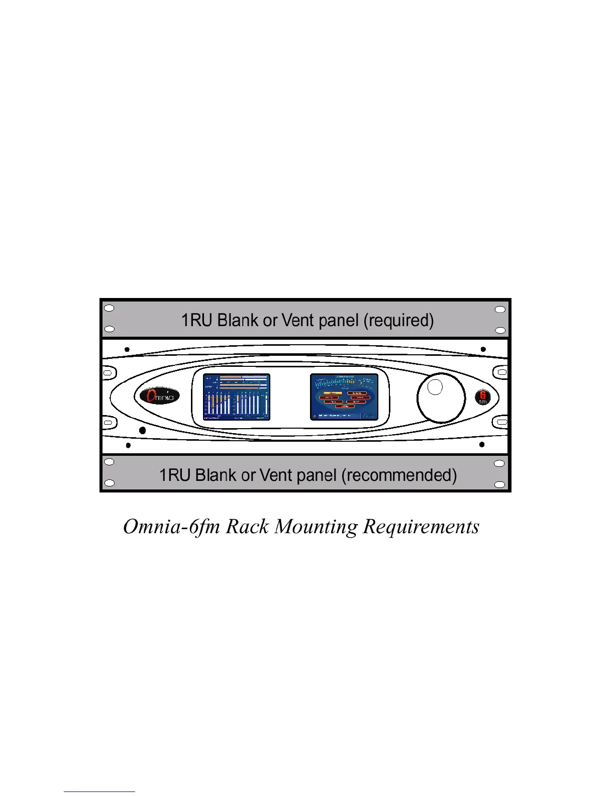 The Omnia-6EX requires 3RU (5.25” [37 mm]) of rack space. Rack mount the unit using four rack screws. If only