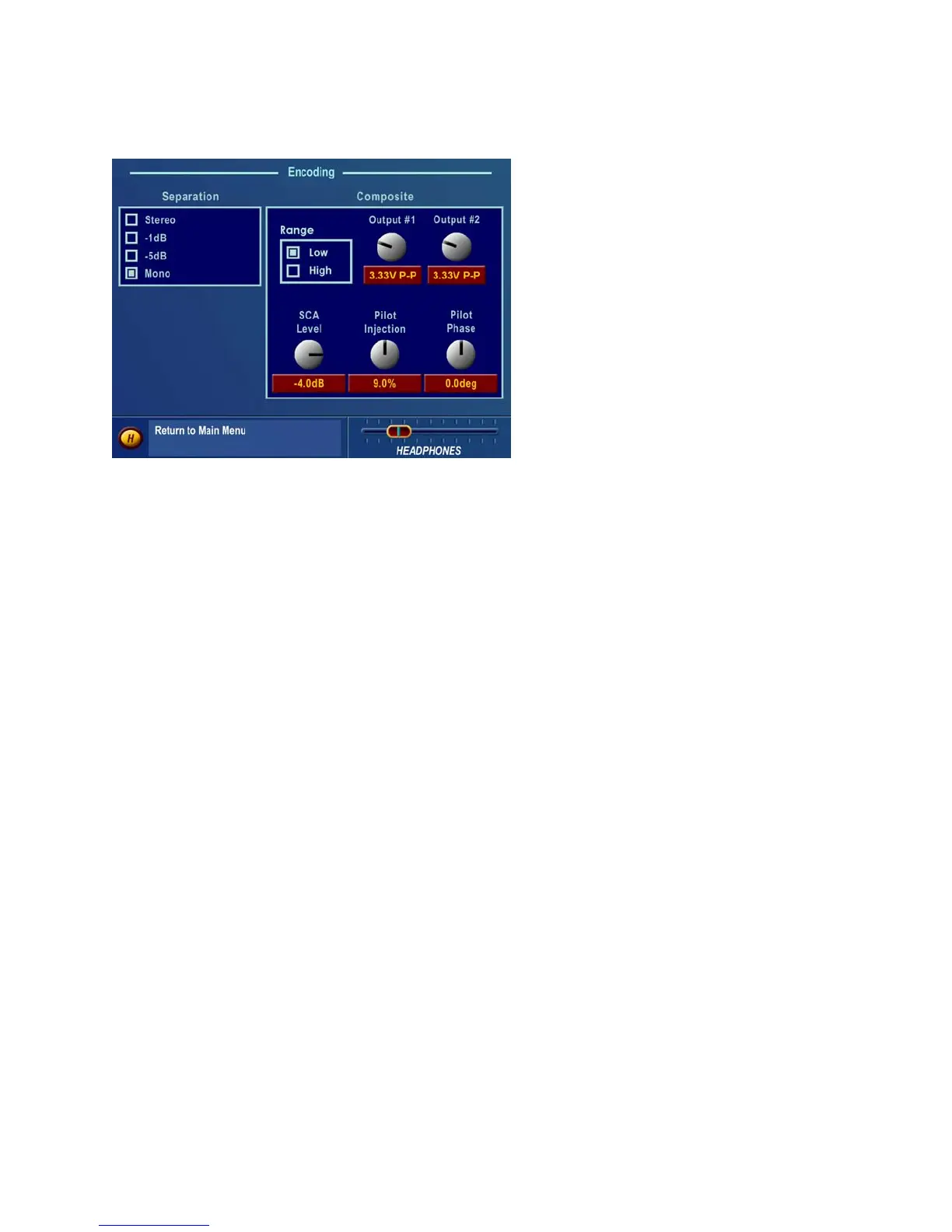 Note: Adjusting the Composite Outputs changes the SCA deviation level since the two output controls are