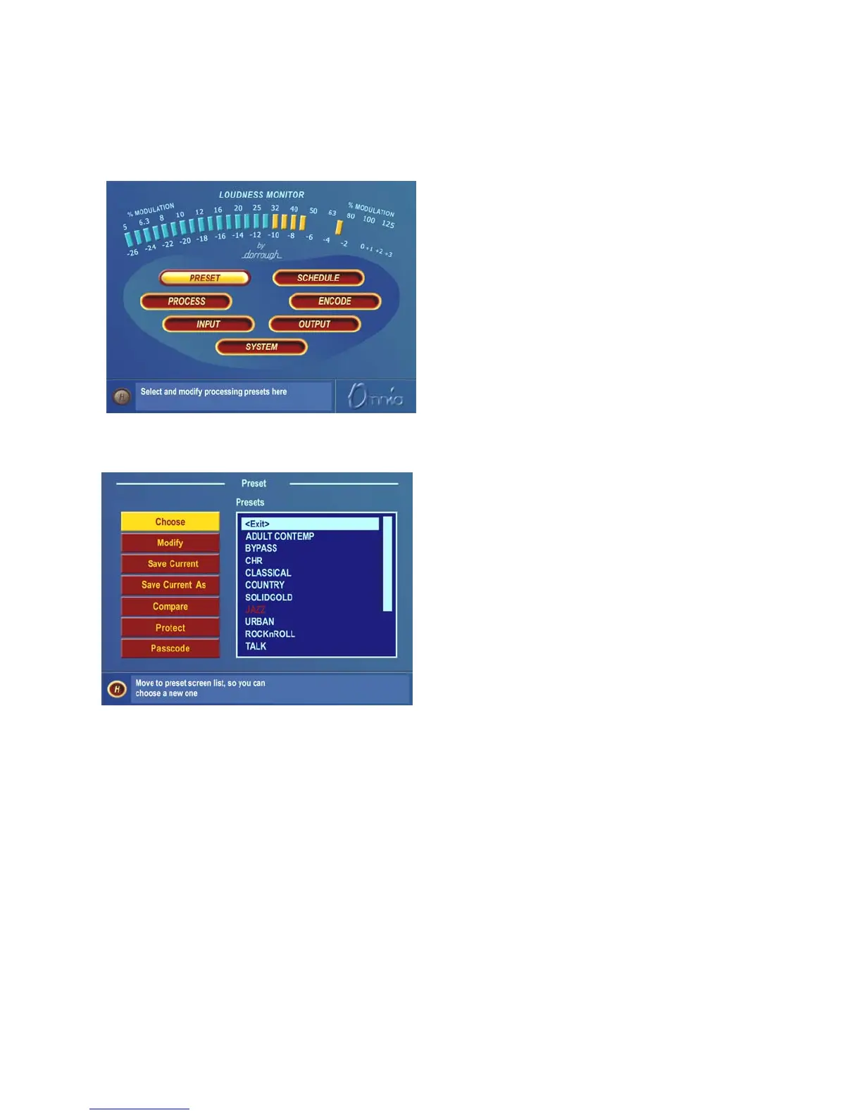 that preset into the Omnia-6EX. To exit the preset selection list, rotate the jog wheel counter-clockwise until the