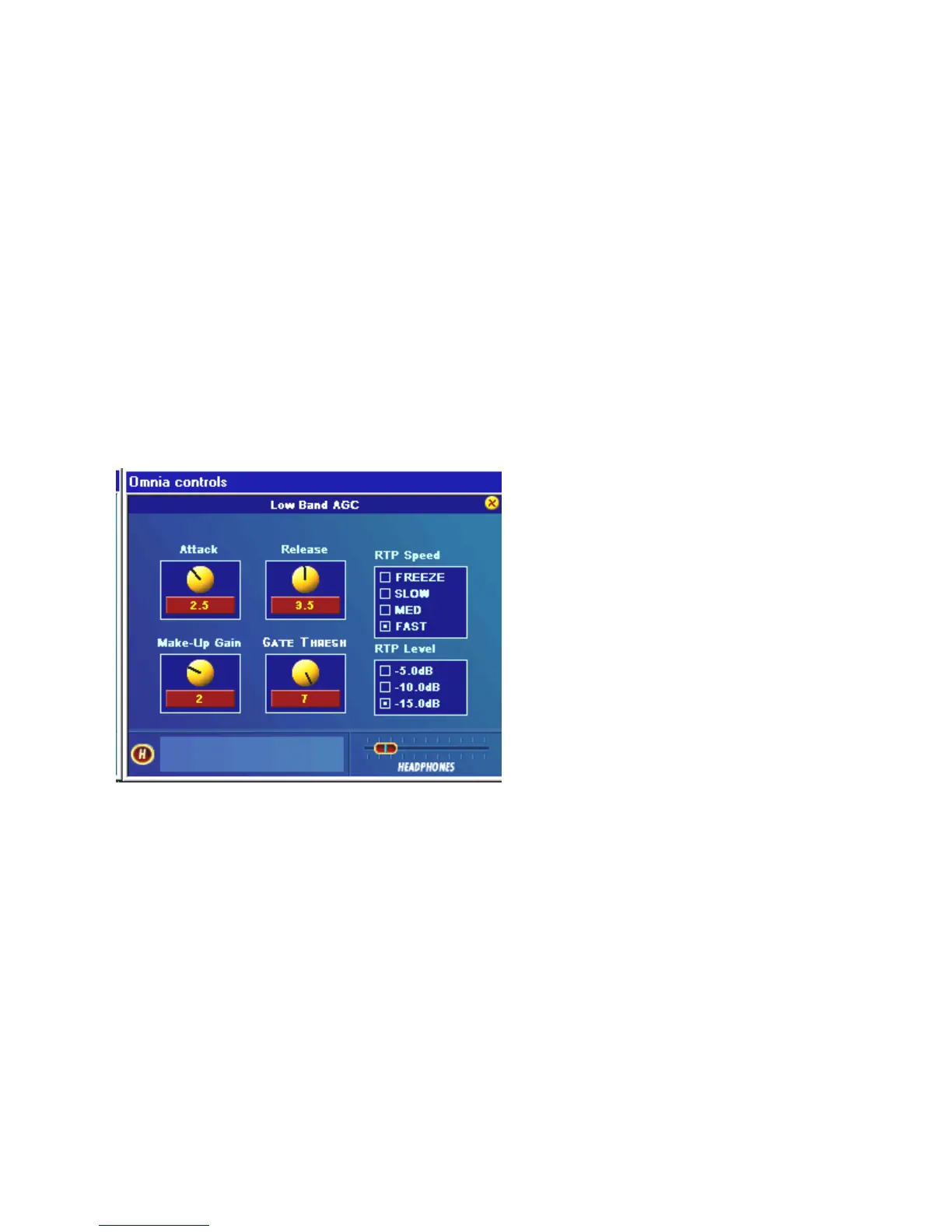 The drive level to each AGC band can be set by the controls at the top of the window. There is +/-6 dB of gain