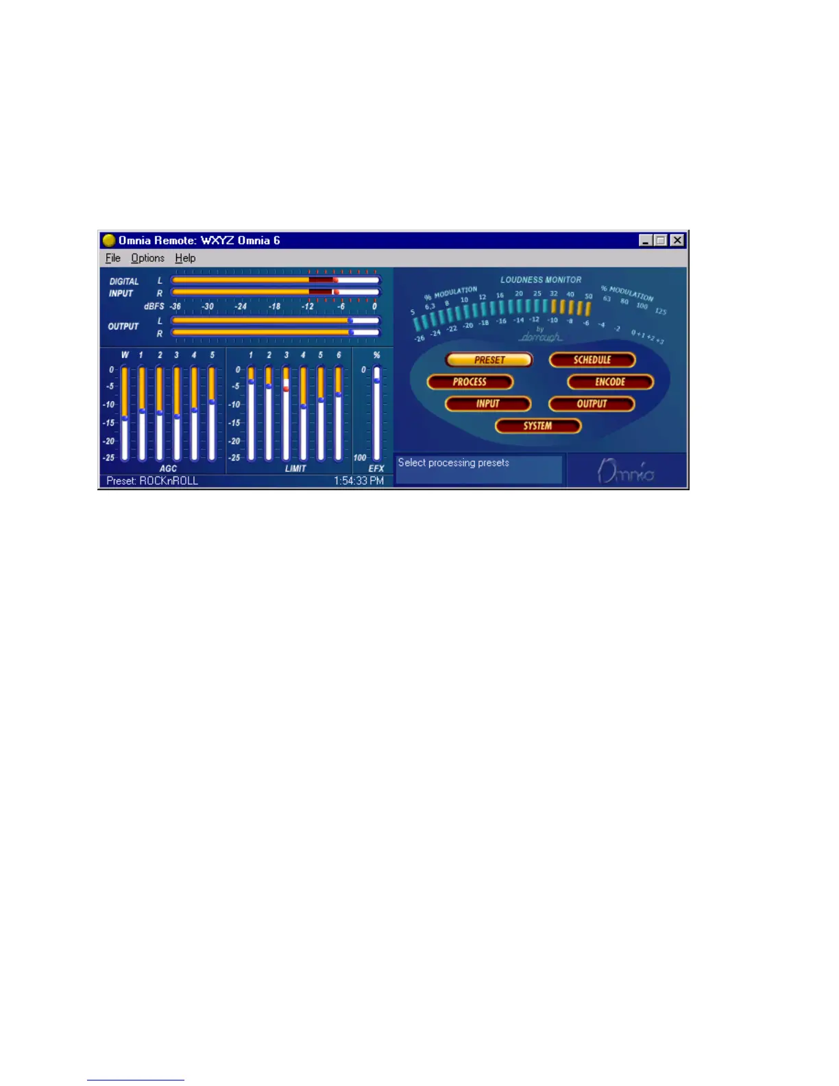 The Remote Control Program for Omnia-6EX looks very similar to the actual Front Panel and works similarly with