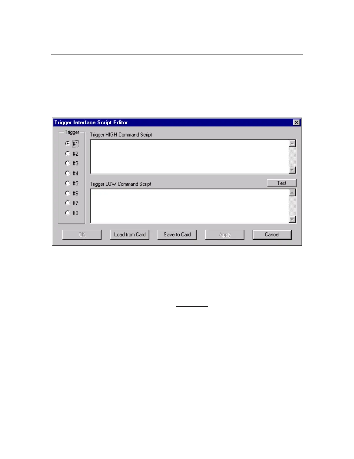"Edit Trigger Scripts" dialog box as opened under "Options", "Edit Trigger Scripts"