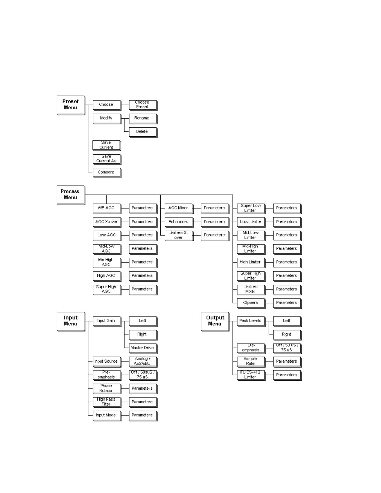 The menu tree for the Omnia-6fm is shown in the following two pages. The seven main menu items are