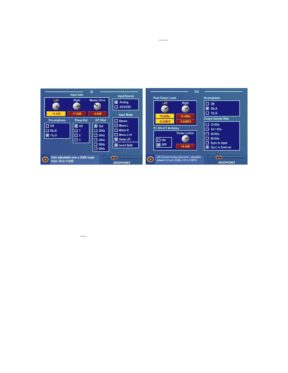 settings of the Input and Output Gain controls respectively. Choices governing the selection of the input