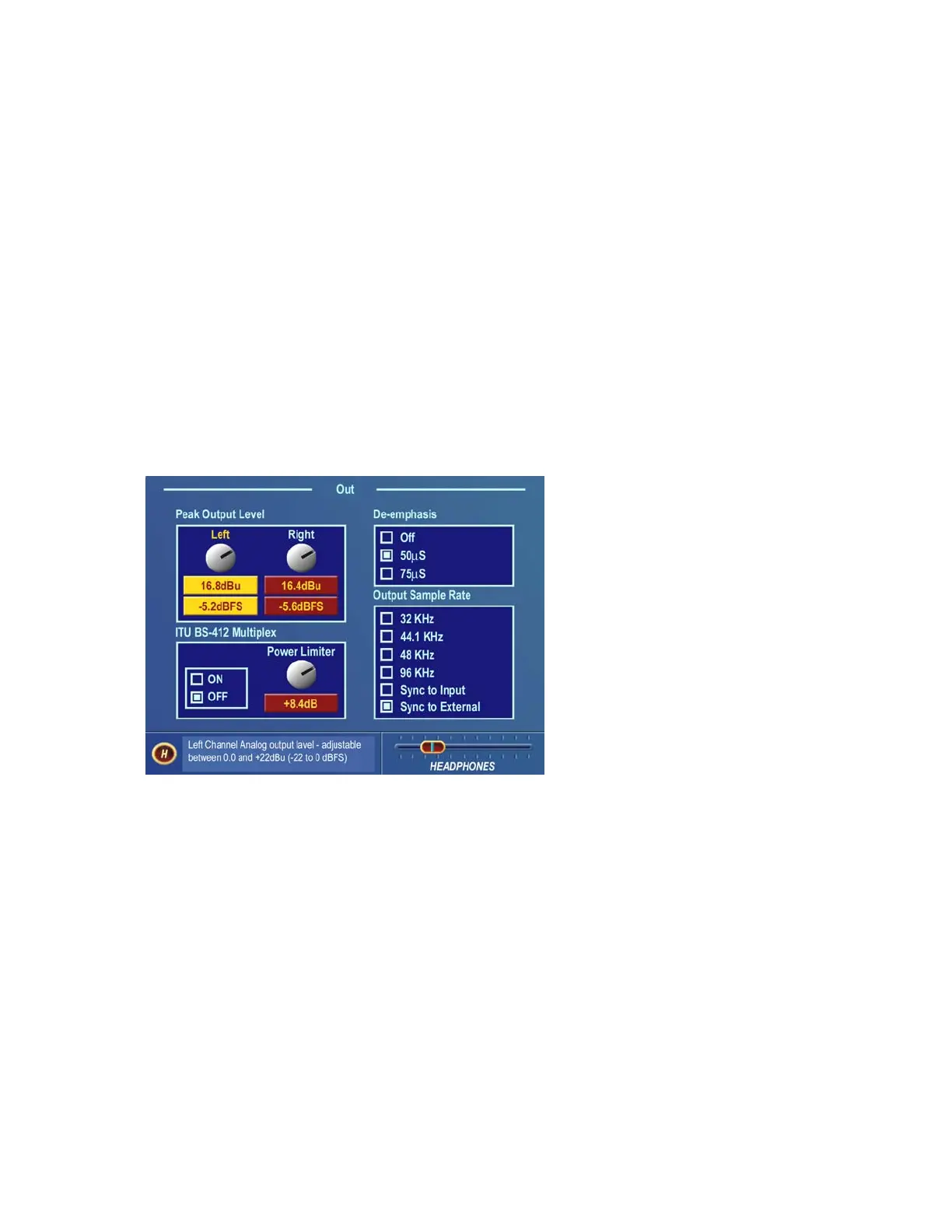 control range is from 0 dBu (-22 dBFS) to +22 dBu (0dBFS) peak output level. This level is normally set