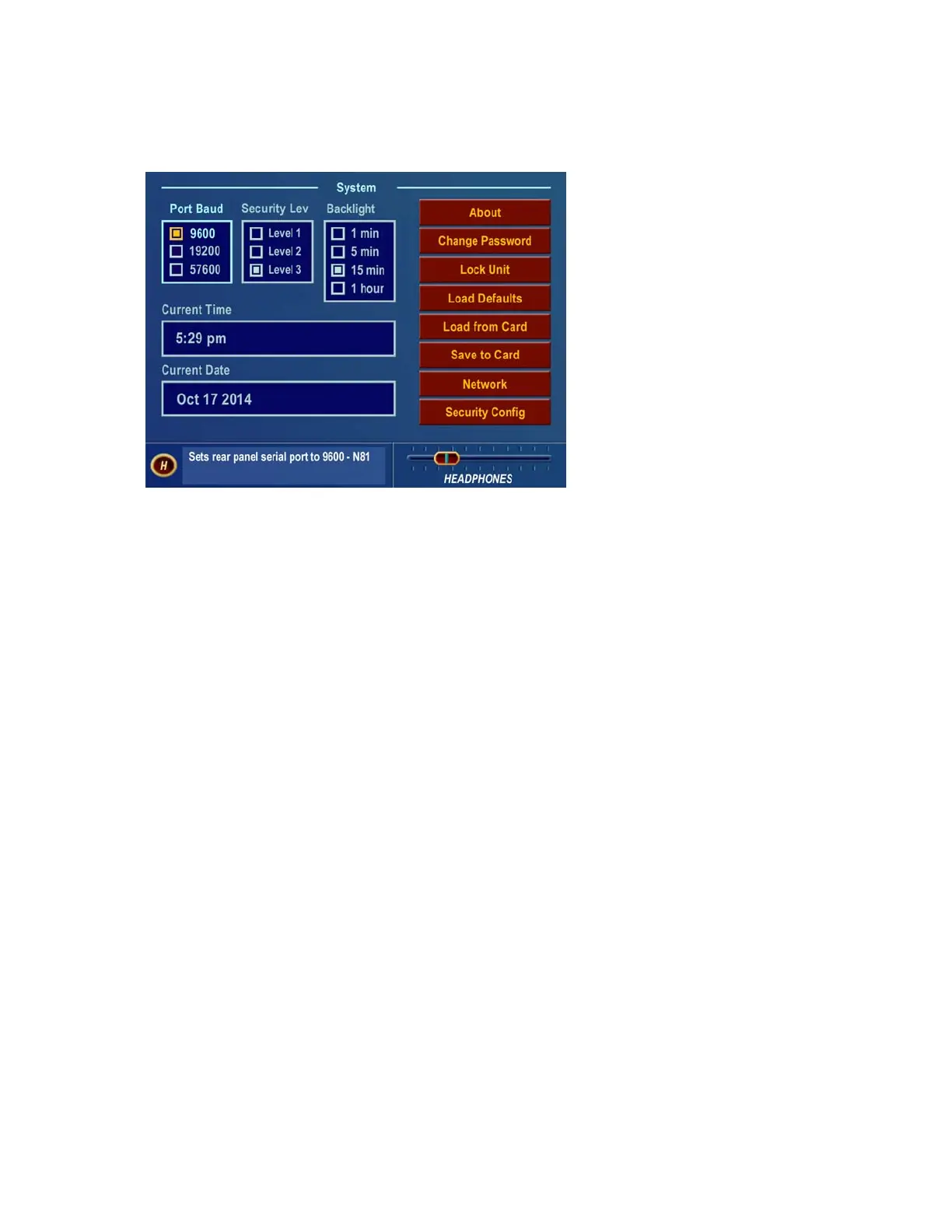 Menu and the headphone level control. The default password for this level is “user” (all lower case).