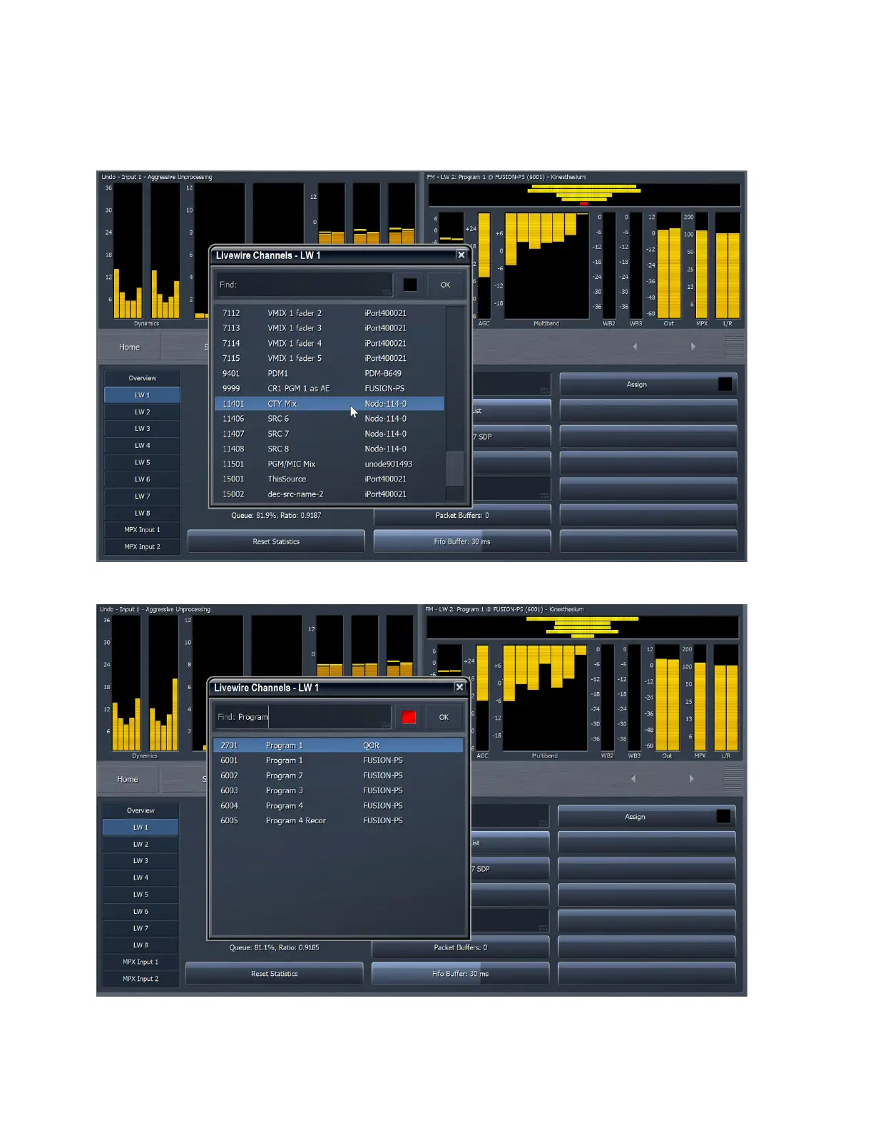 This shows the LW1 input channel list but with the search term “Program” applied. Note that the search is “live” and searches