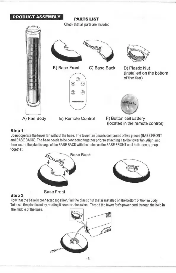 OmniBreeze DC2018 - Product Assembly; Parts List