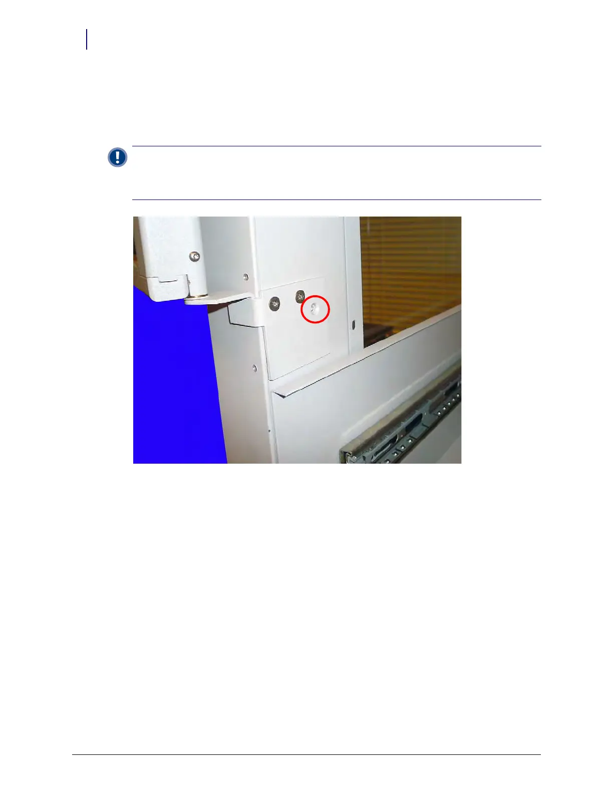 Remove the innermost screw on the door hinge above the CT PC Box area. Use a Torx T20 driver.