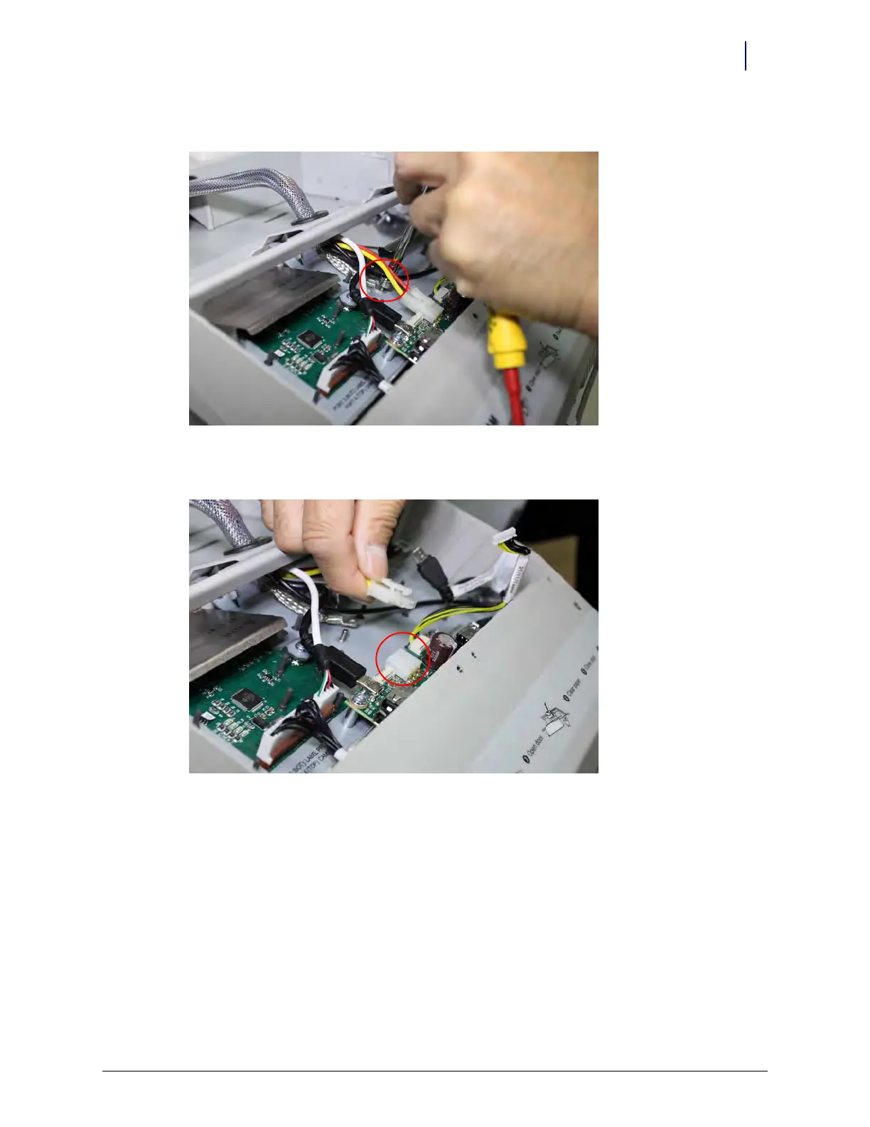 14. Remove the main power cable from the keyboard chassis circuit board.