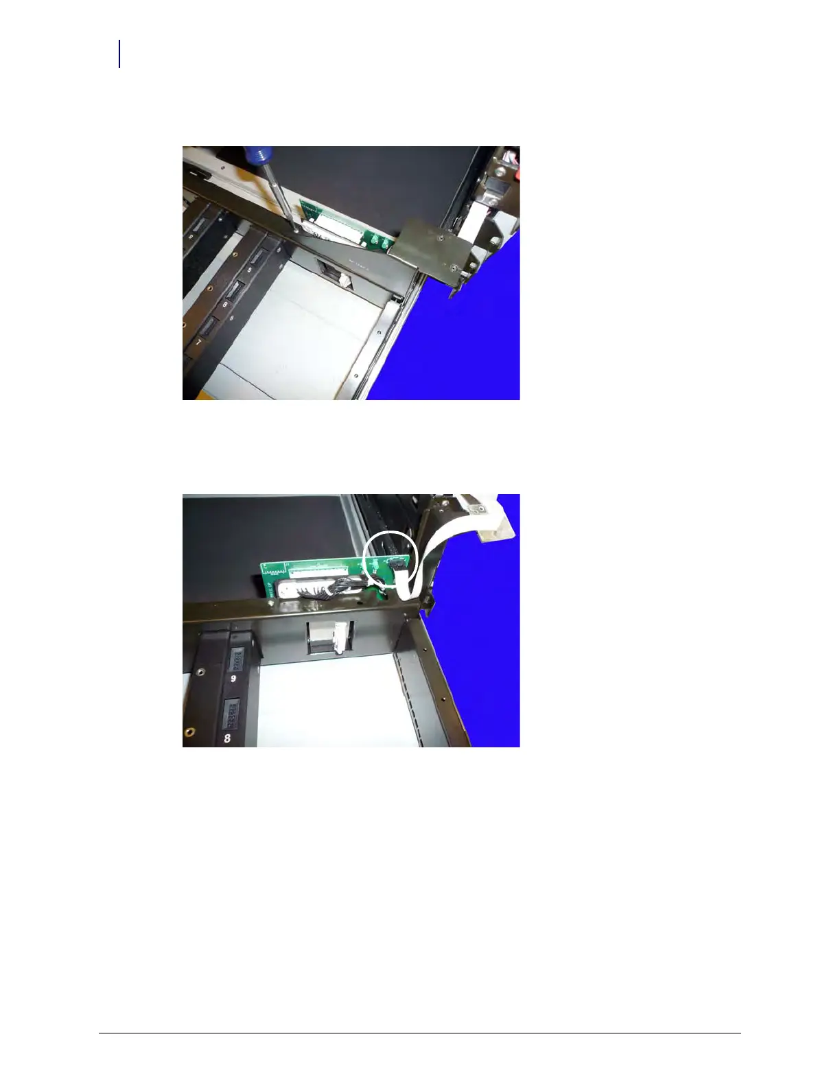 5. Disconnect the rail cable from P1 on the rail controller board.