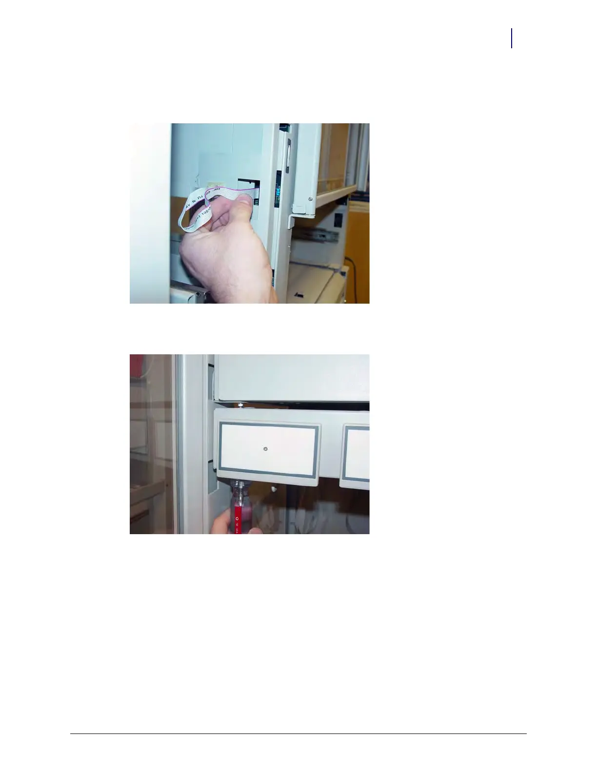 1. Pull the suture rack’s right-most rack forward, then disconnect the SPC board cable.