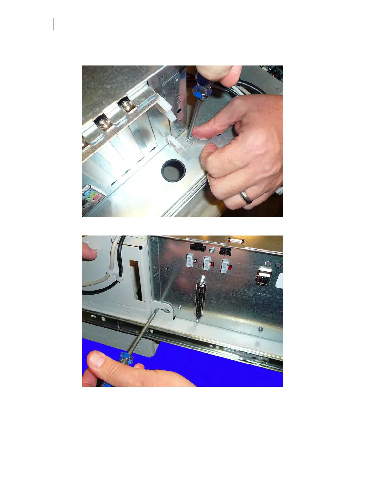 3. Replace and tighten the screws that secure the E-Box to the console frame.