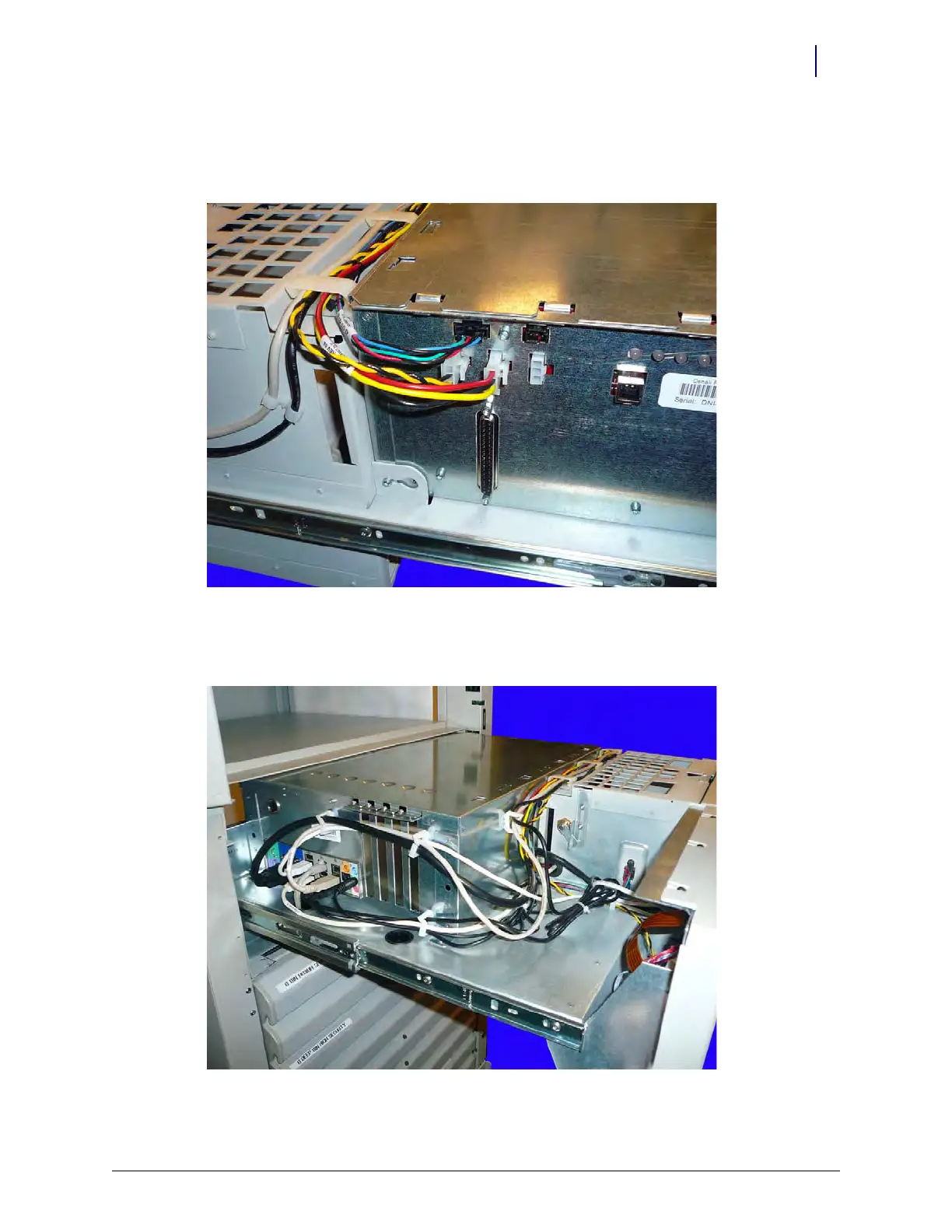 4. Reconnect the three cables on the right-hand side of the E-Box. The location of the two