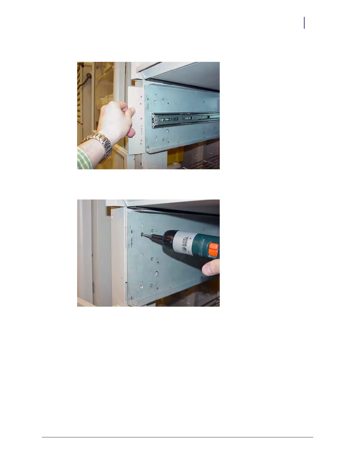 11. Secure the left carrier wall to the frame with two screws using a Torx T15 screwdriver.