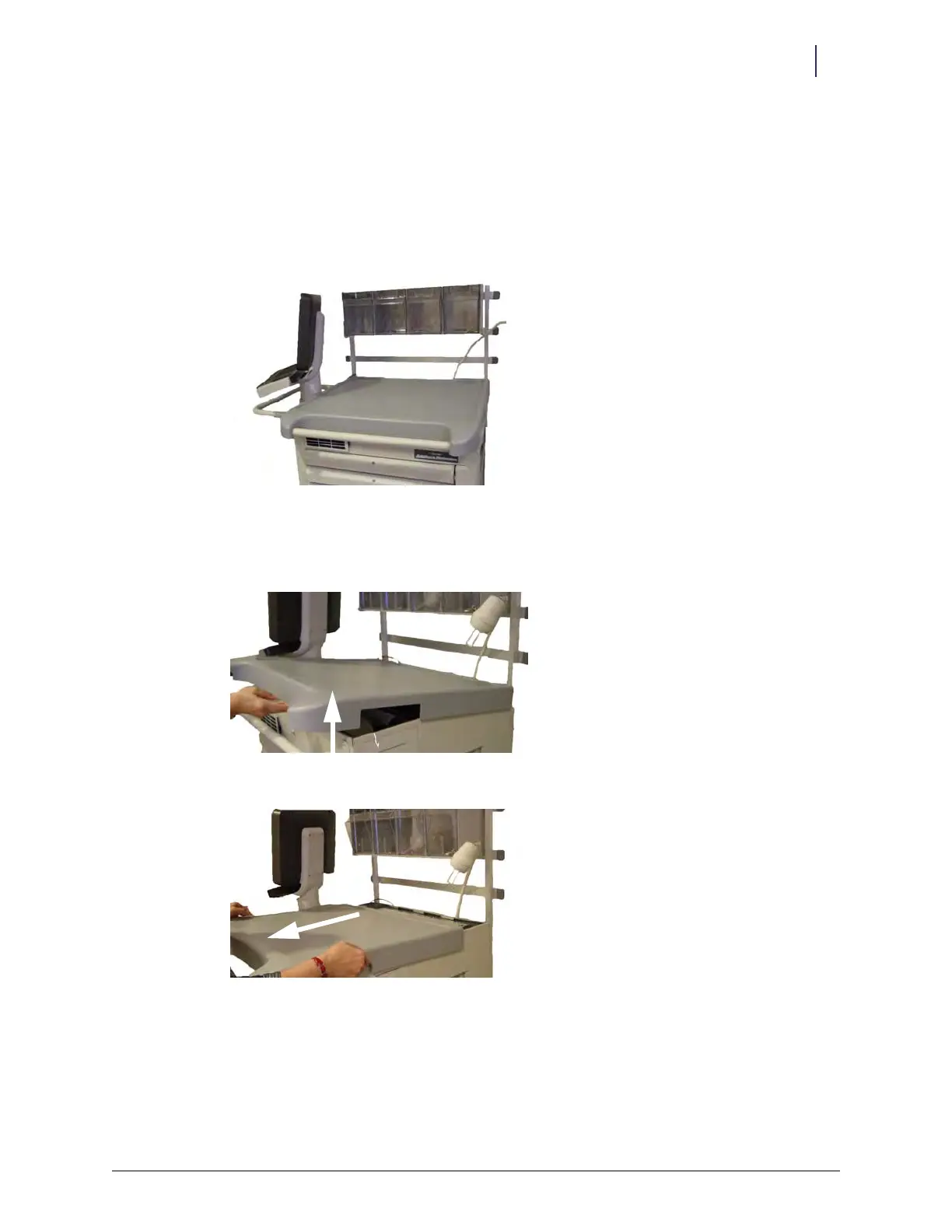c. Tilt the worksurface up, pull it forward, then lift it up and away. Set it aside.