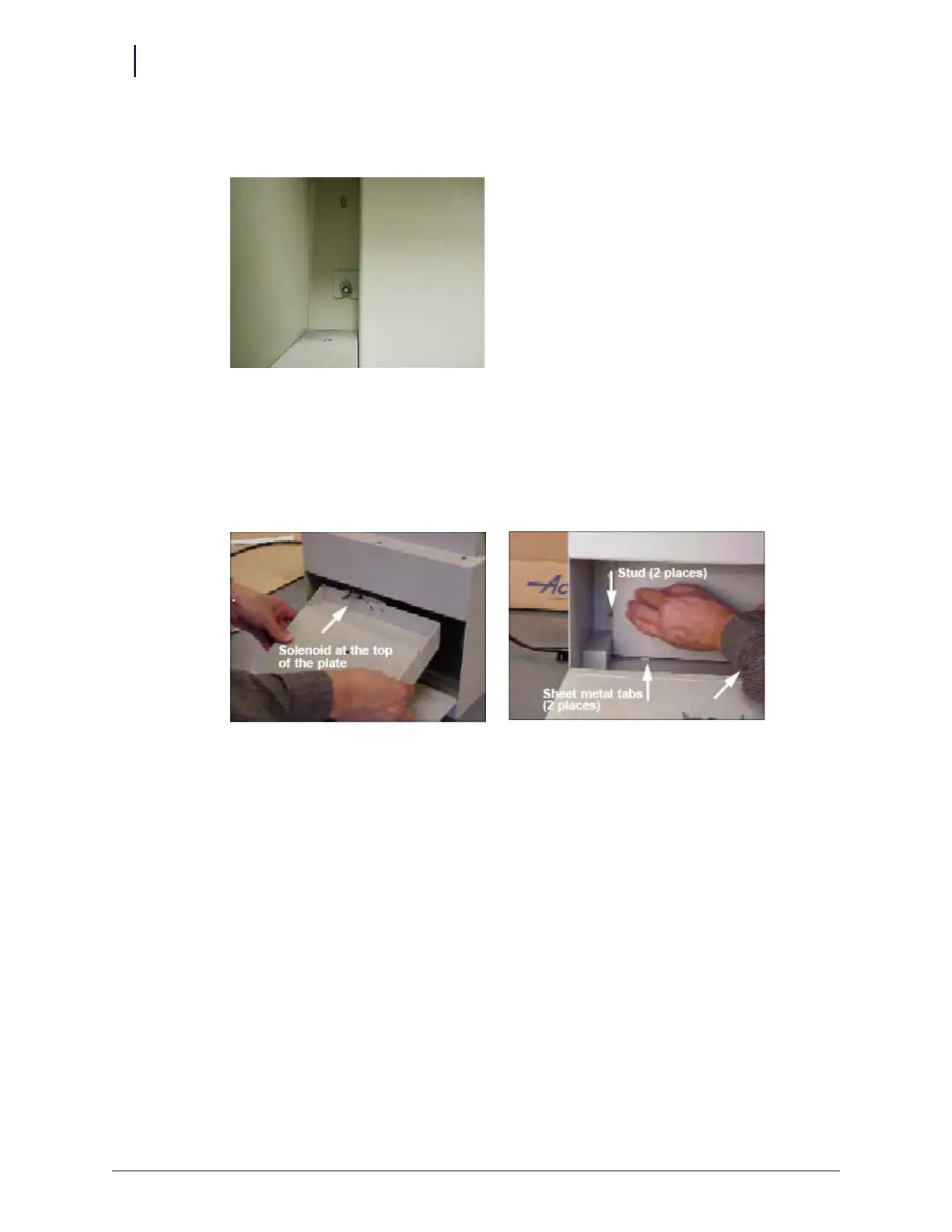 9. Replace the PCB/solenoid metal plate, then tighten the two nuts on either side of the plate,