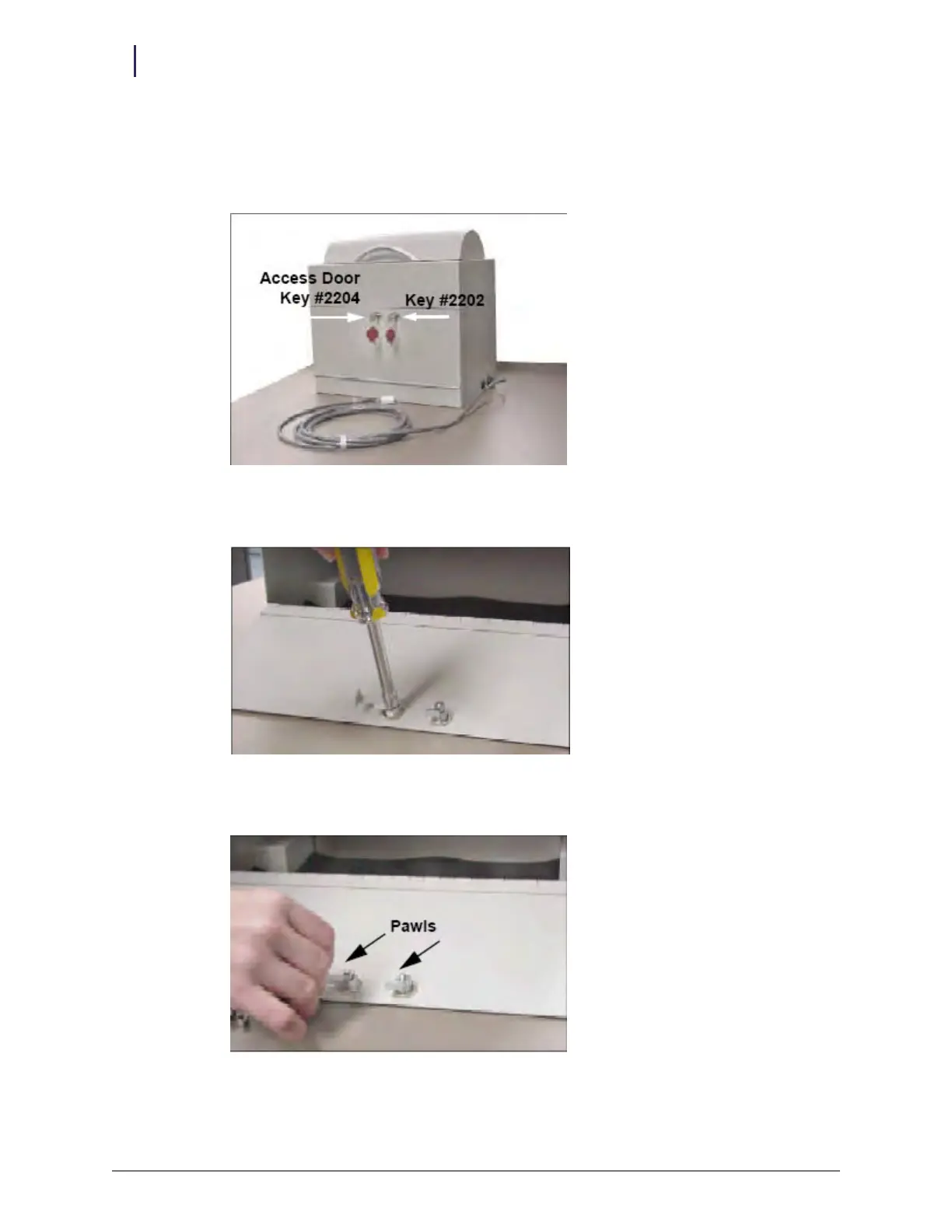 1. Open the access door with keys #2204 (unlocks access door) and #2202 (overrides access door