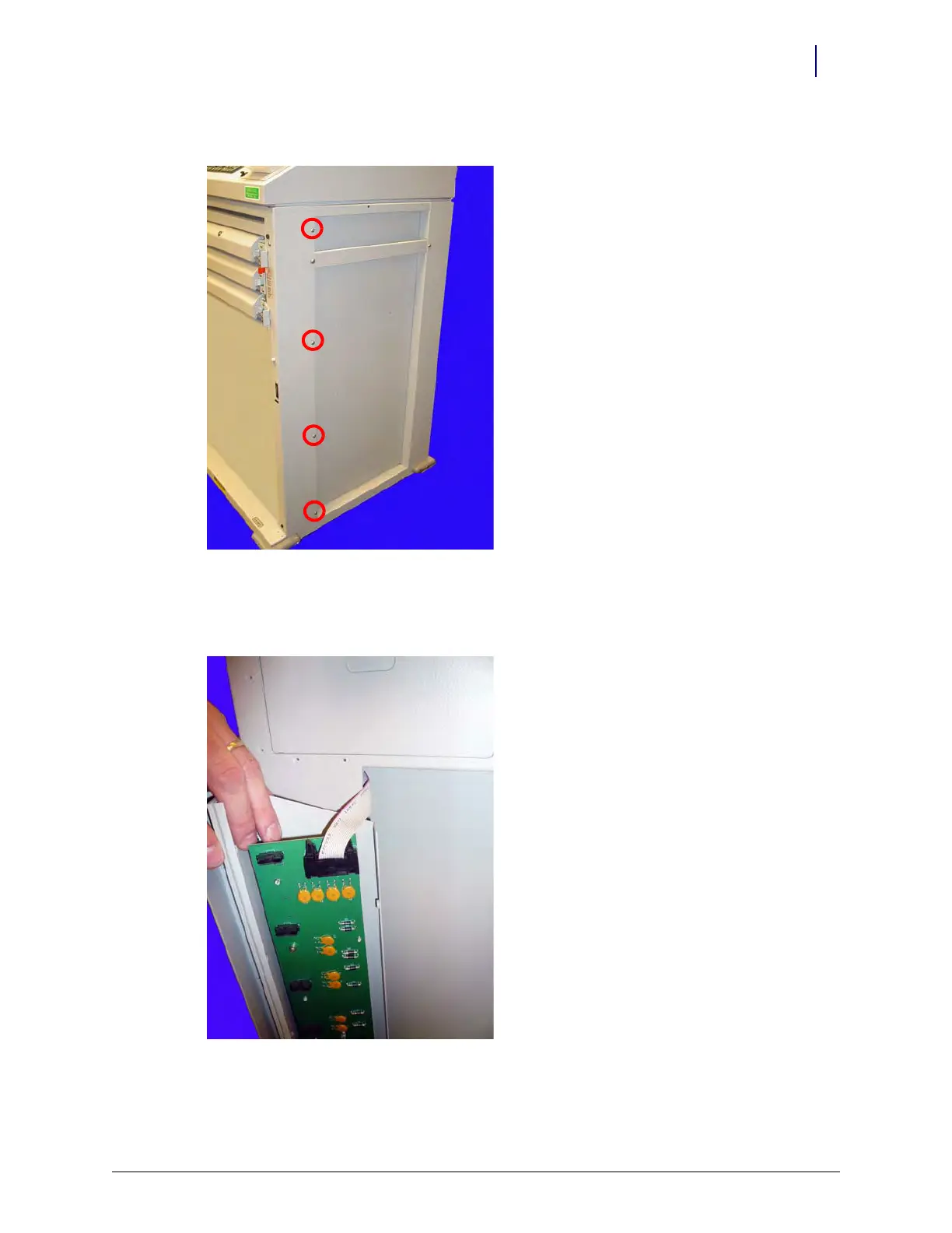 7. Remove the four screws on the side of the frame that secure the wireway.