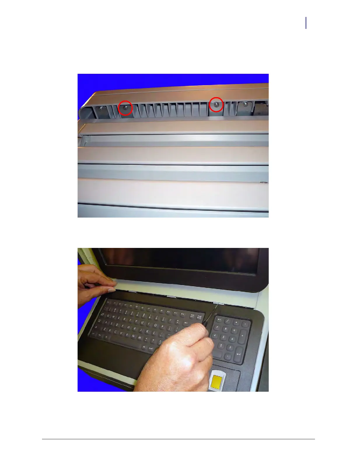 1. Remove the two screws on the under side of the OmniRx G4 console that secure the keyboard.
