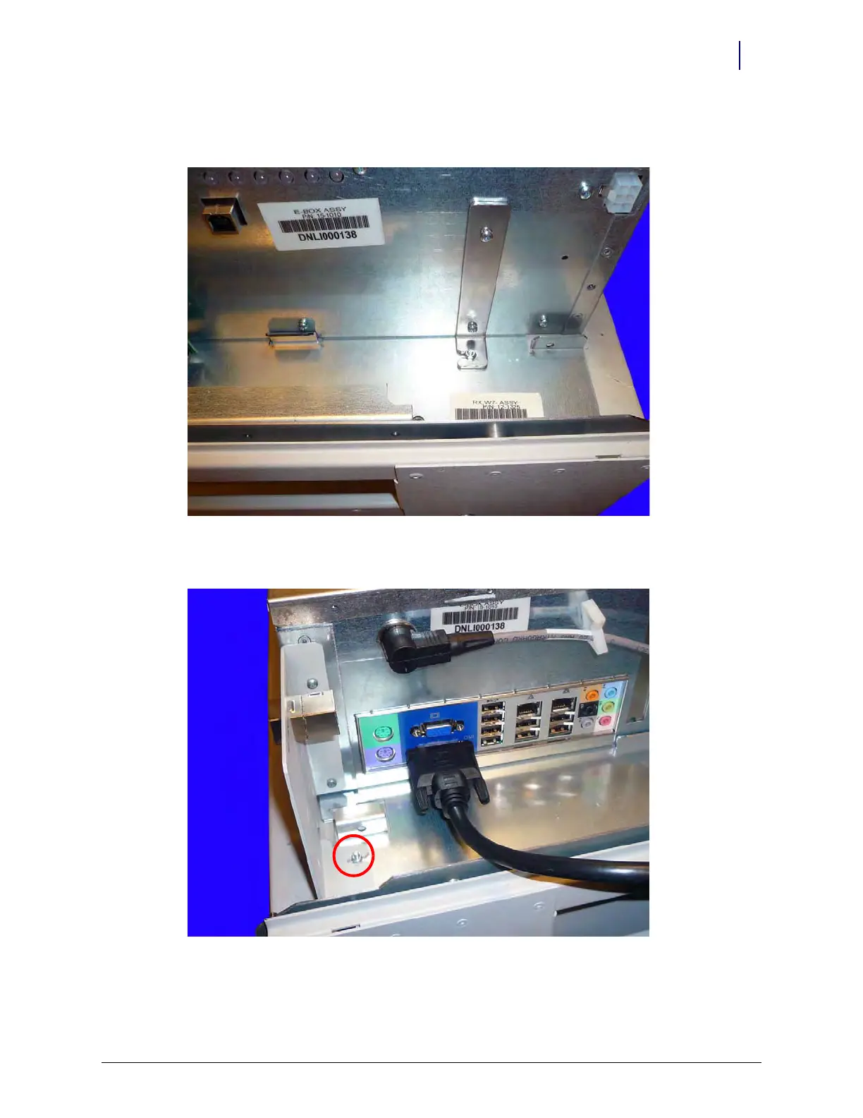 5. Loosen the two screws securing the bracket on the left-hand side of the E-Box.
