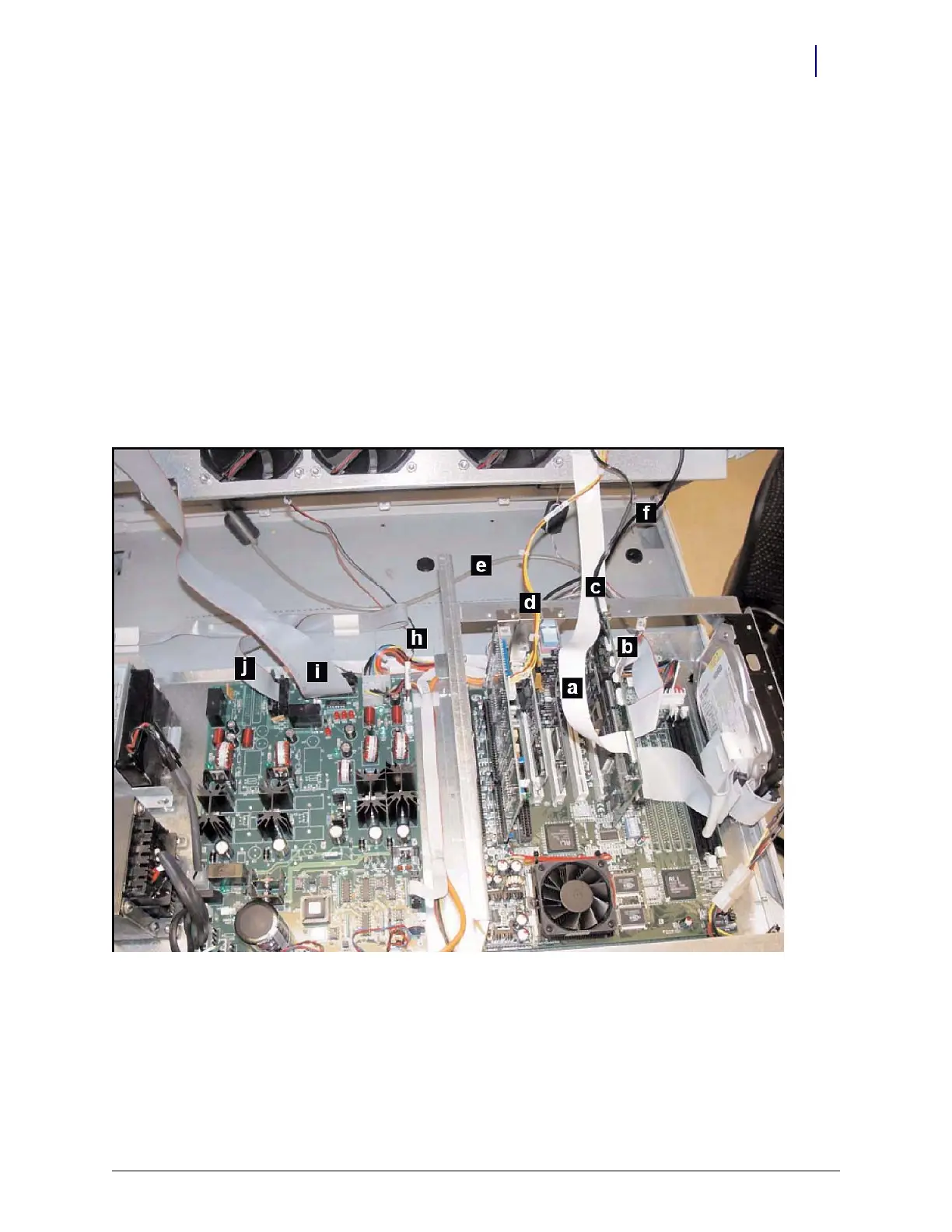 Figure 1-26. Location of cables on the CT PC tray with PowerCom2 board