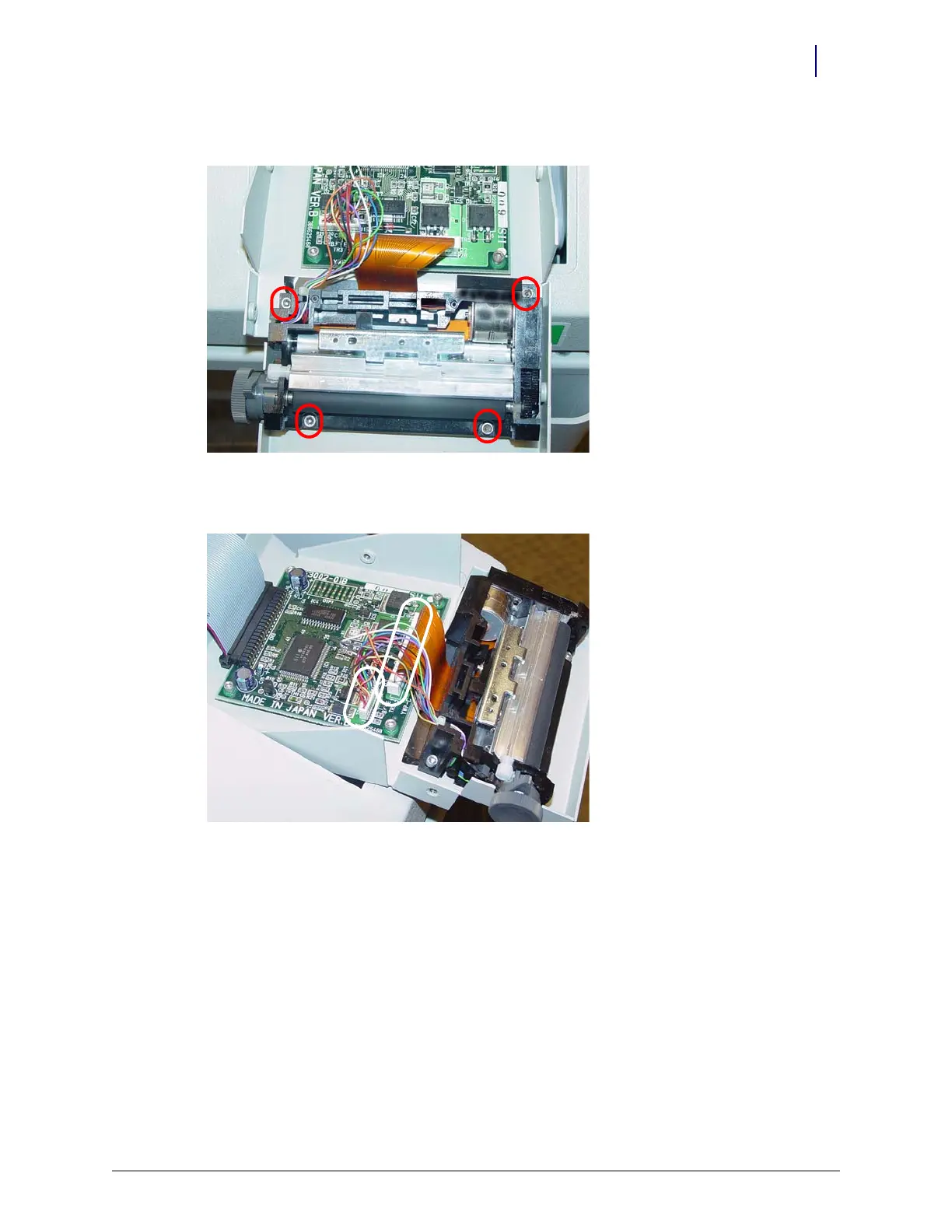 7. Disconnect the printer ribbon cable and the printer data cables from the printer PC board.