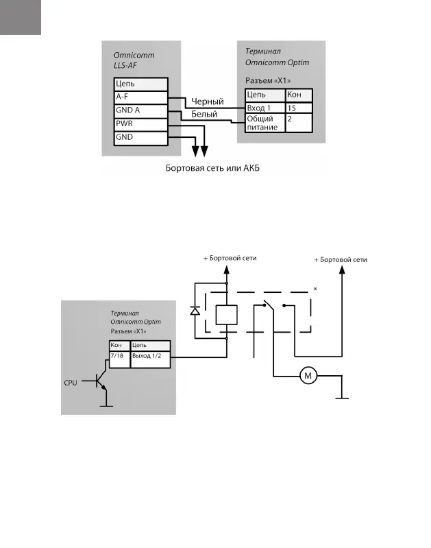 Рисунок 16. Схема подключения датчика уровня топлива Omnicomm LLS-AF