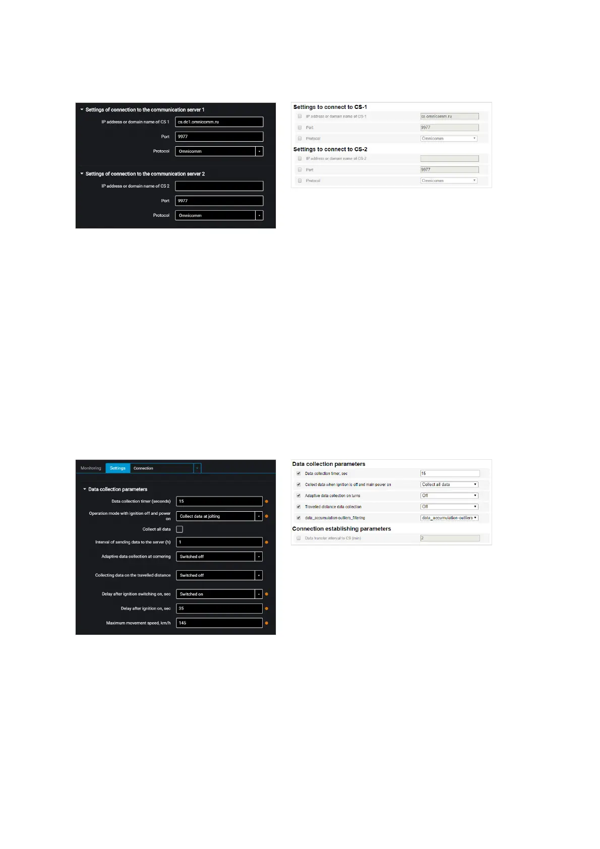 “Protocol” – select data transmission protocol to the CS. Possible options: Omnicomm