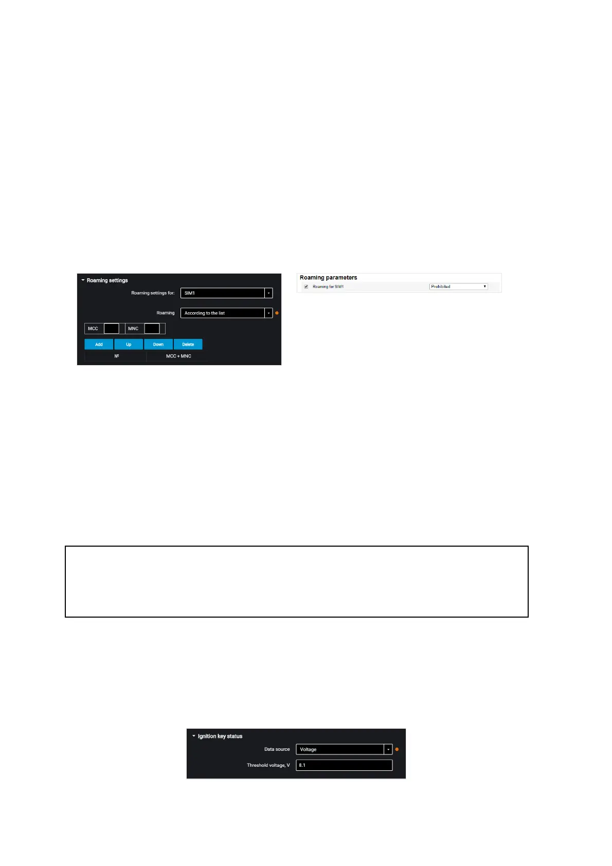 “Roaming” – select the option of SIM card using while in roaming. Possible options: